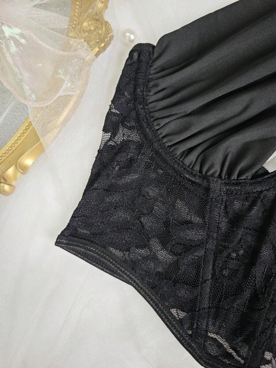 Detalles: Espalda al aire, Encaje en contraste, Cordon de espalda