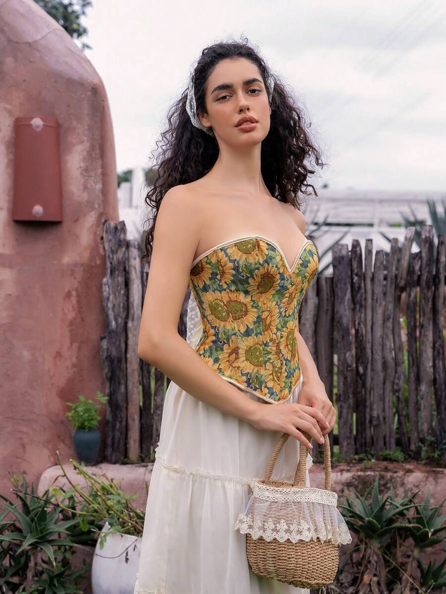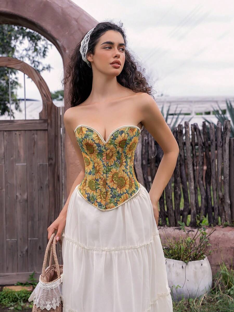 1 pieza parte superior con estampado de jacquard de girasol para mujer