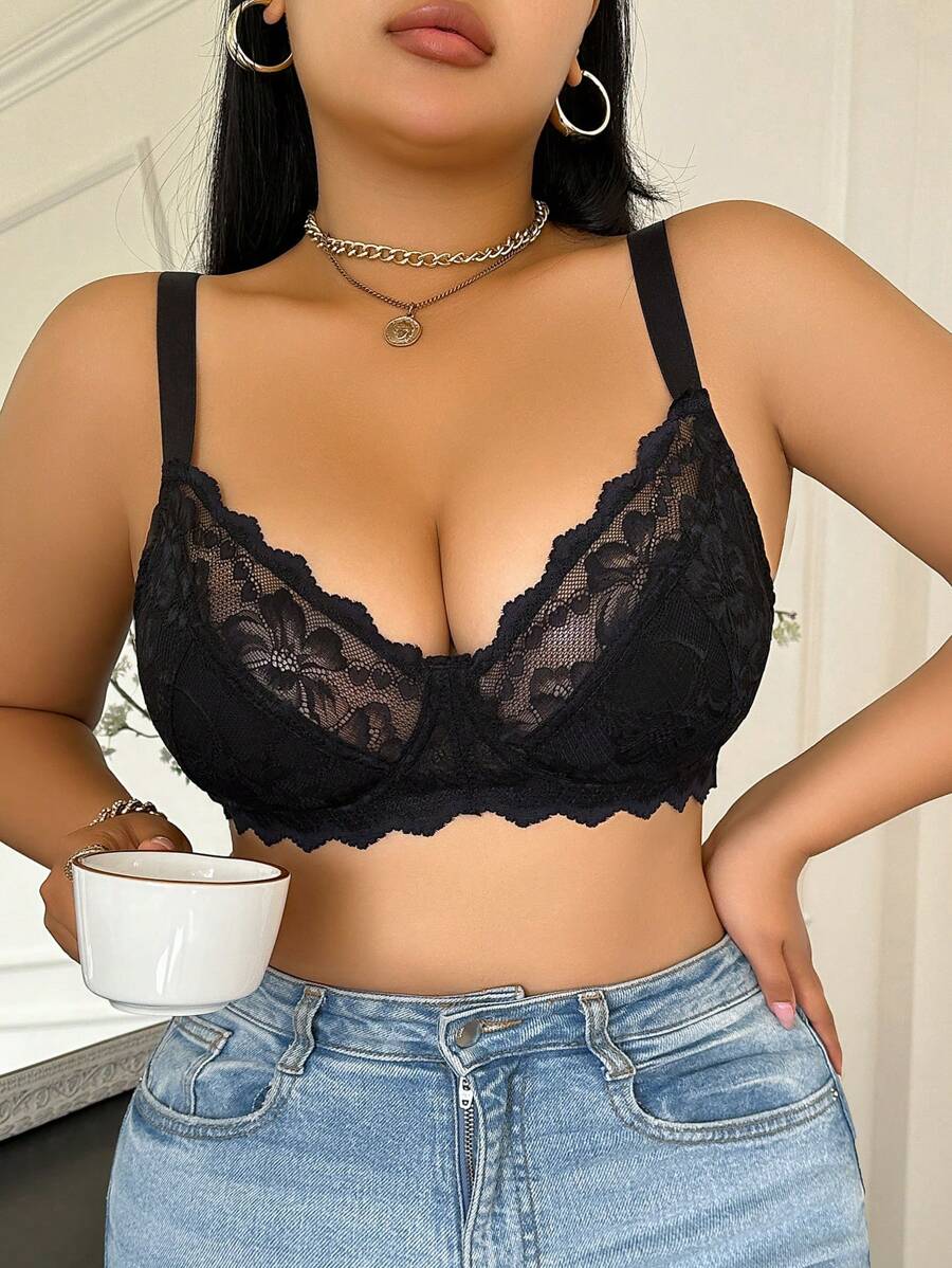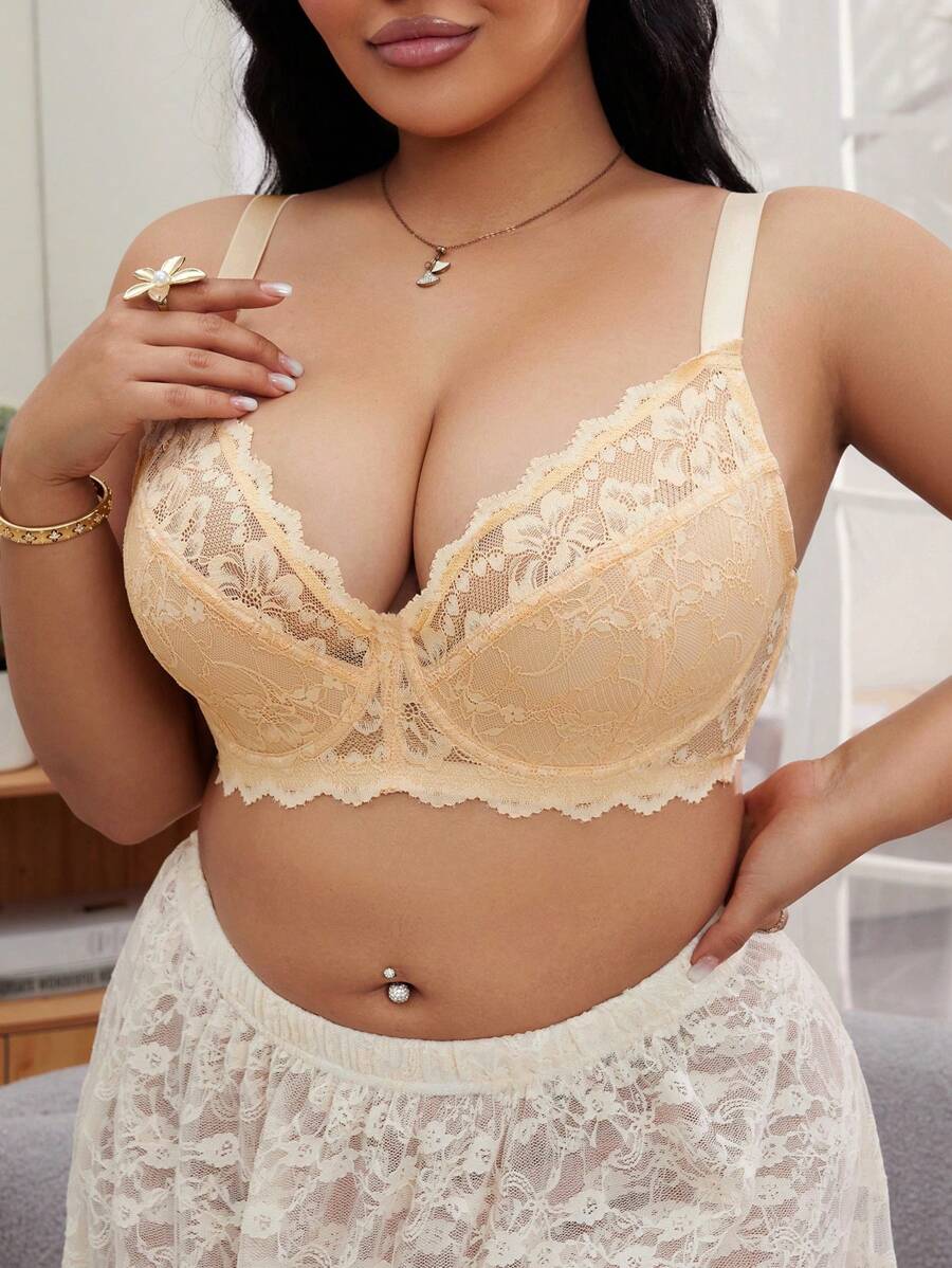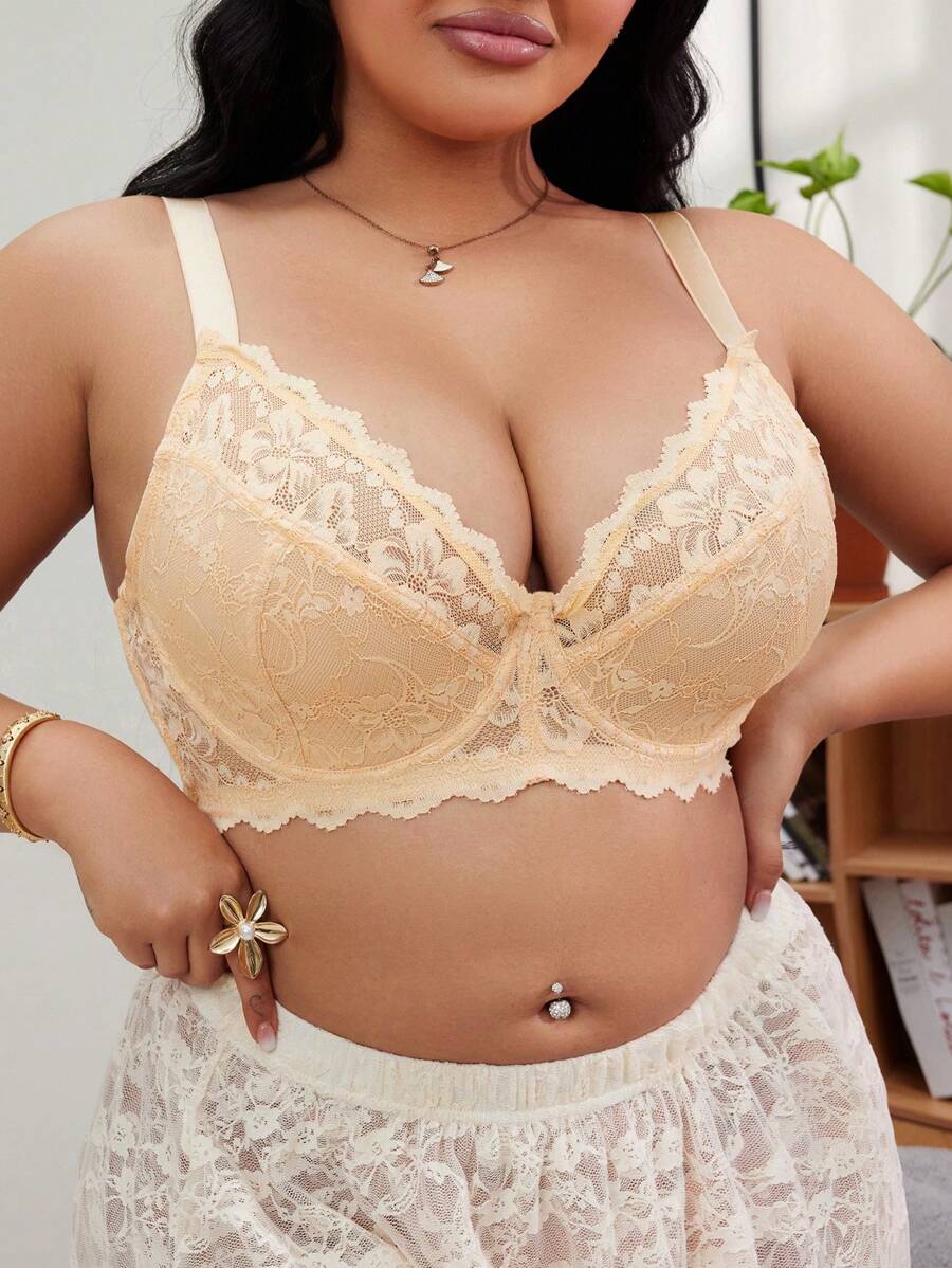 1 pieza brasier con aros comodo con parches de encaje para mujer de talla grande