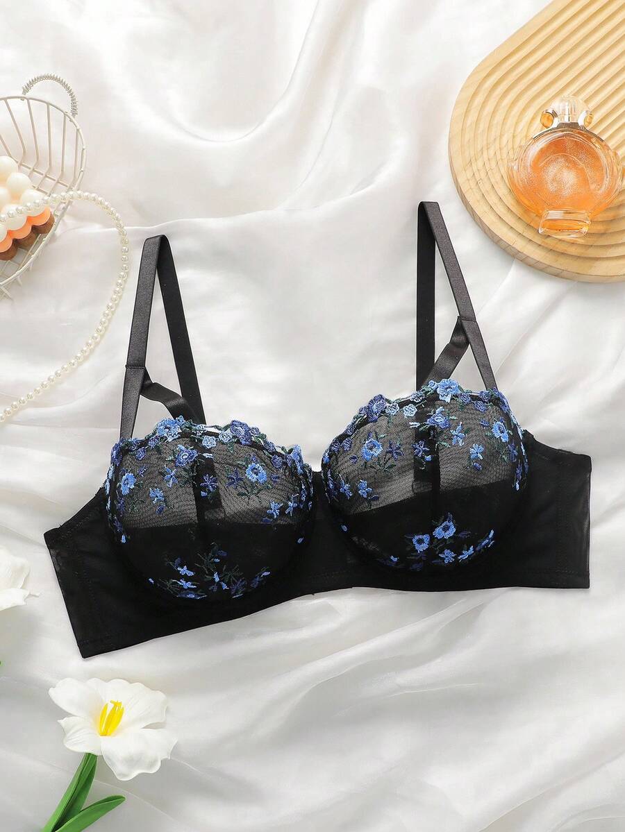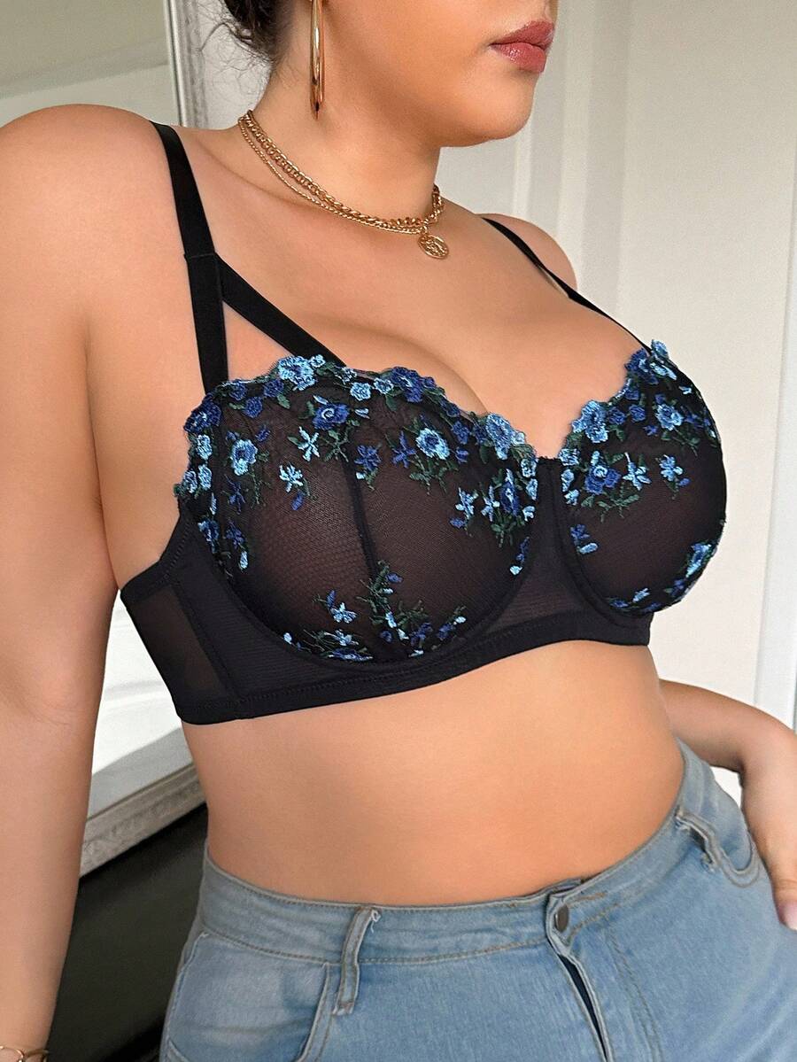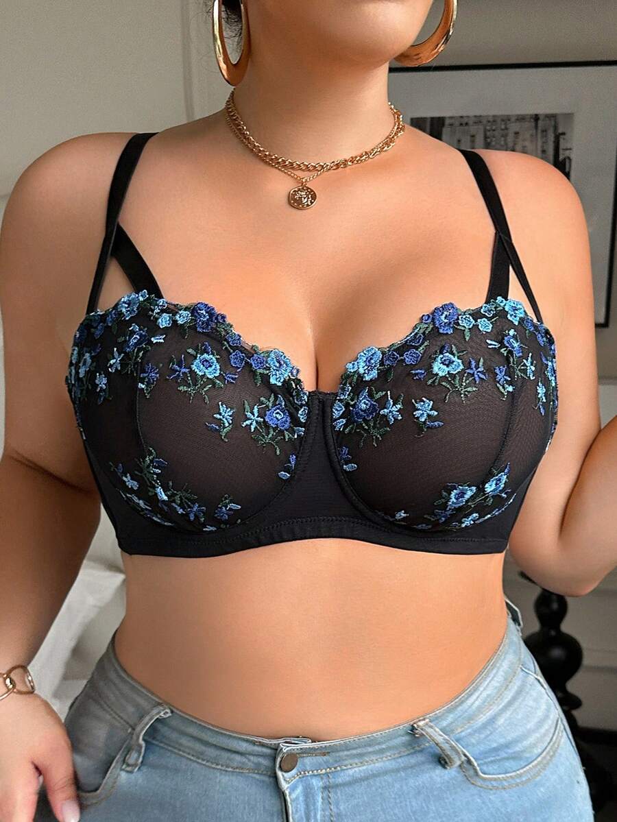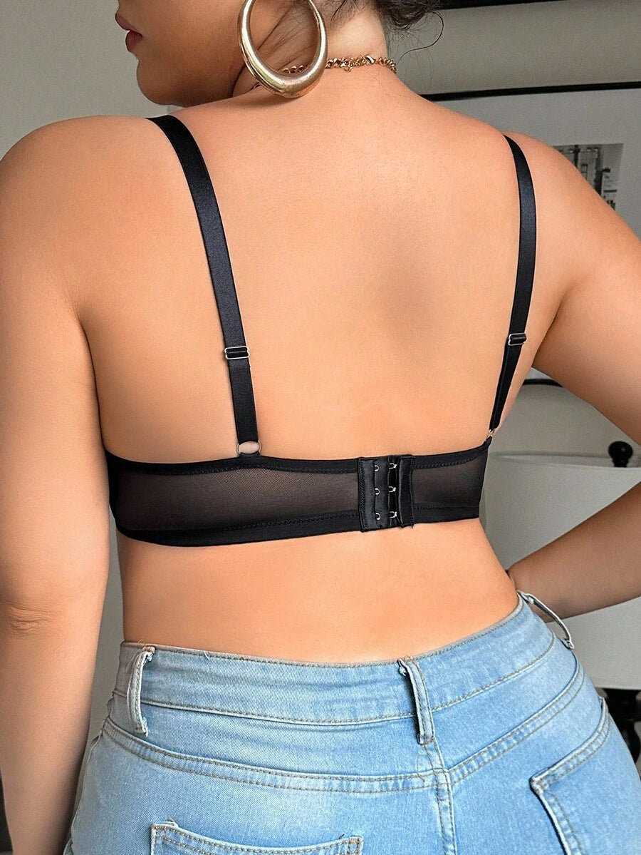 1 pieza brasier con aros y bordado de malla para tallas grandes – Muy Bonita
