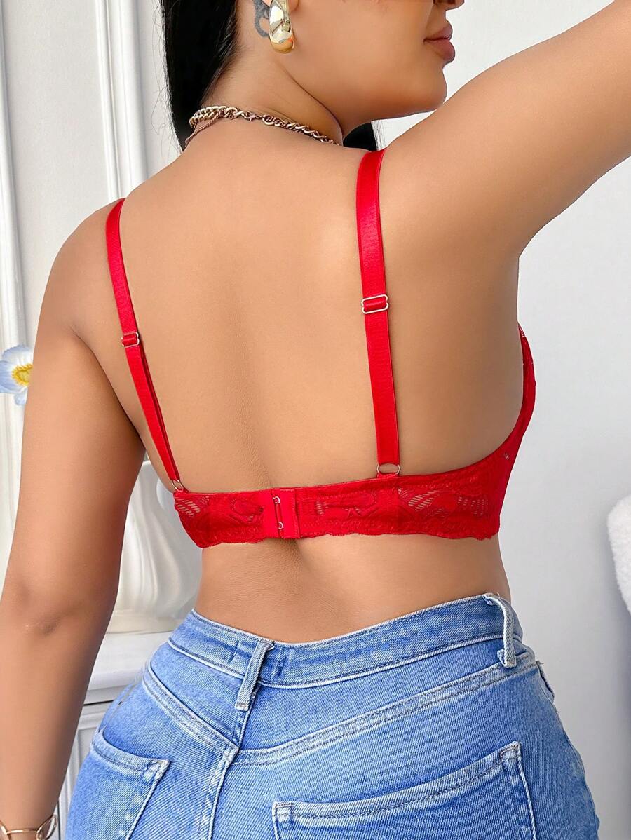 Brasier lenceria con copas completas acolchadas con aros, decoracion de corazon y aplicaciones de encaje de estilo patchwork, tallas grandes para el dia de san valentin