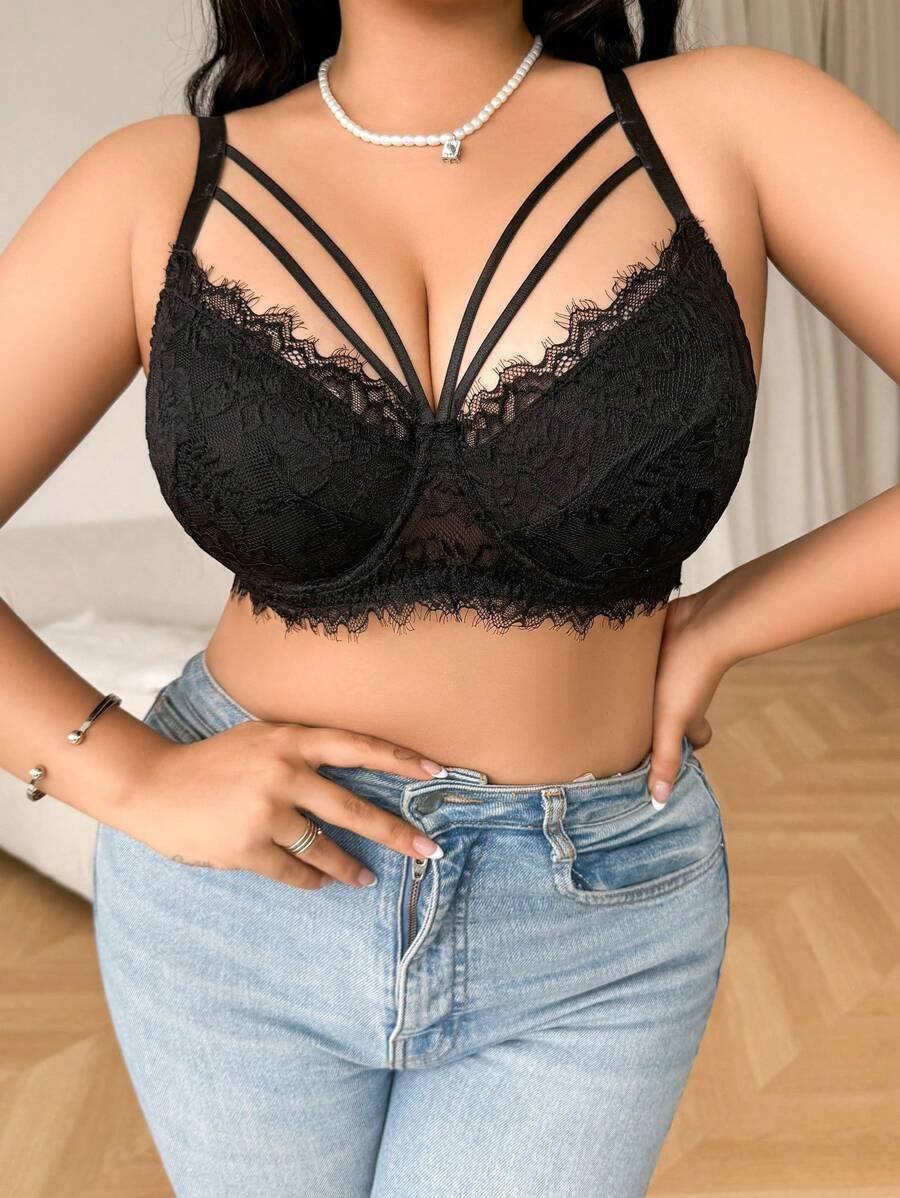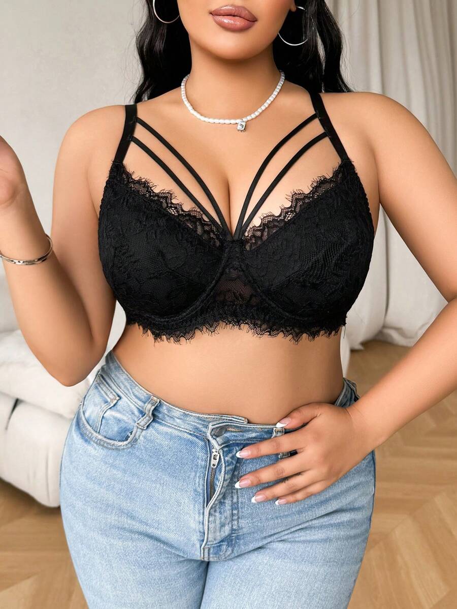 1 pieza brasier lencero de talla grande para mujer con parche de encaj – Muy Bonita