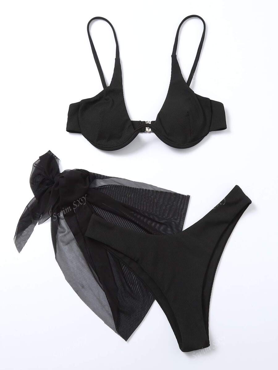 Conjunto de 3 bikinis con aros y falda de malla para playa de verano – Muy Bonita
