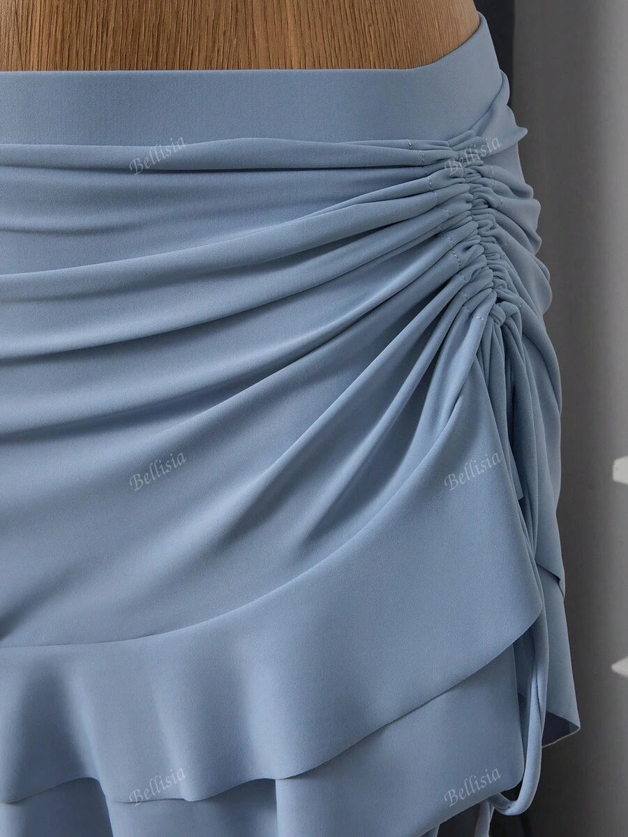 Bellisia conjunto de bikini de unicolor sexy para mujer con pecho cruzado y aro, set de 3 piezas con falda y camisa de cubierta para el verano