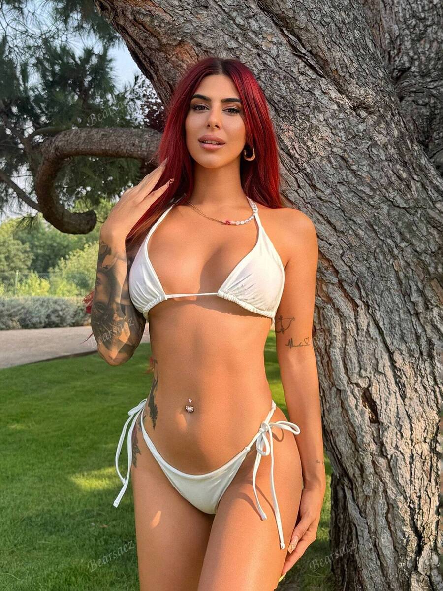 Bearsaez conjunto de 3 piezas de bikini de mujer de unicolor con cuell – Muy Bonita