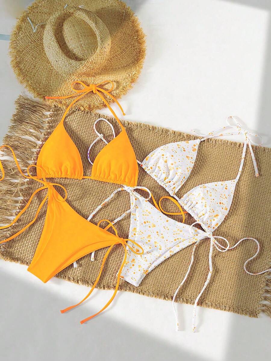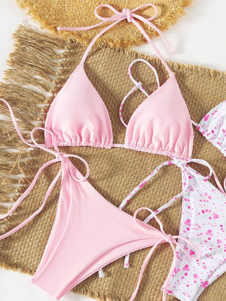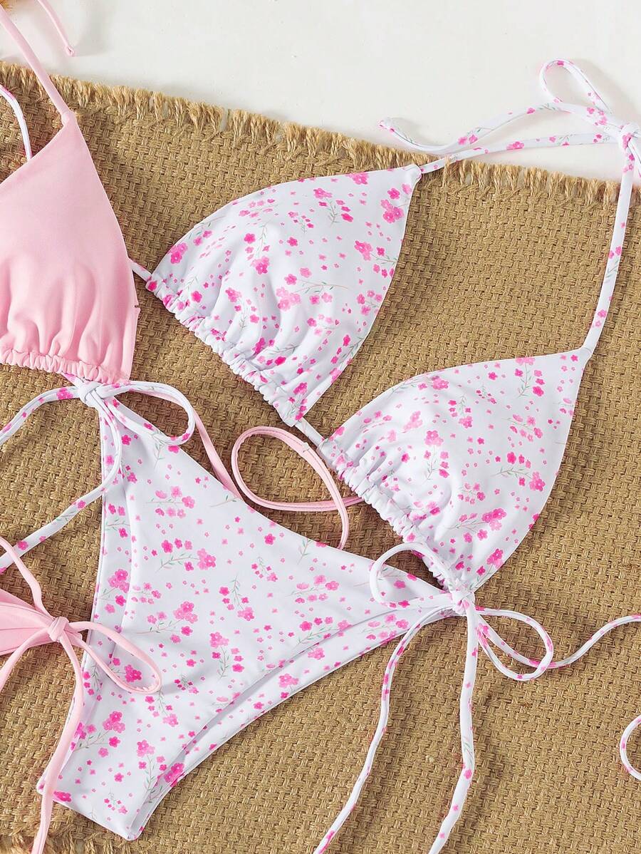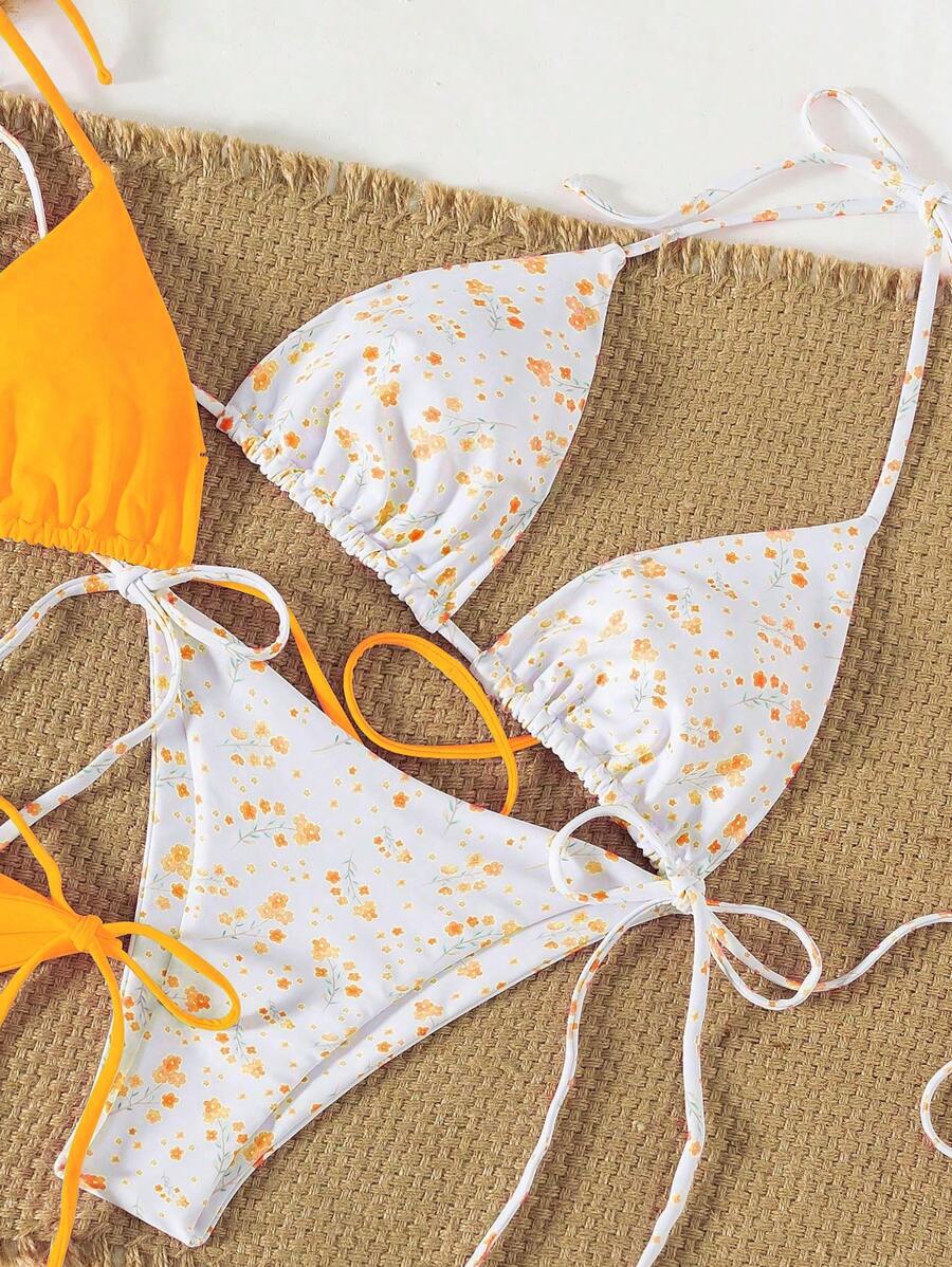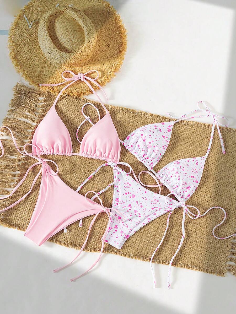 Conjunto de 2 piezas bikini de cuello de halter con estampado floral d – Muy Bonita