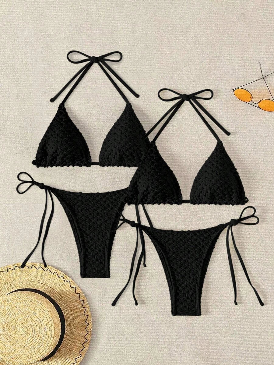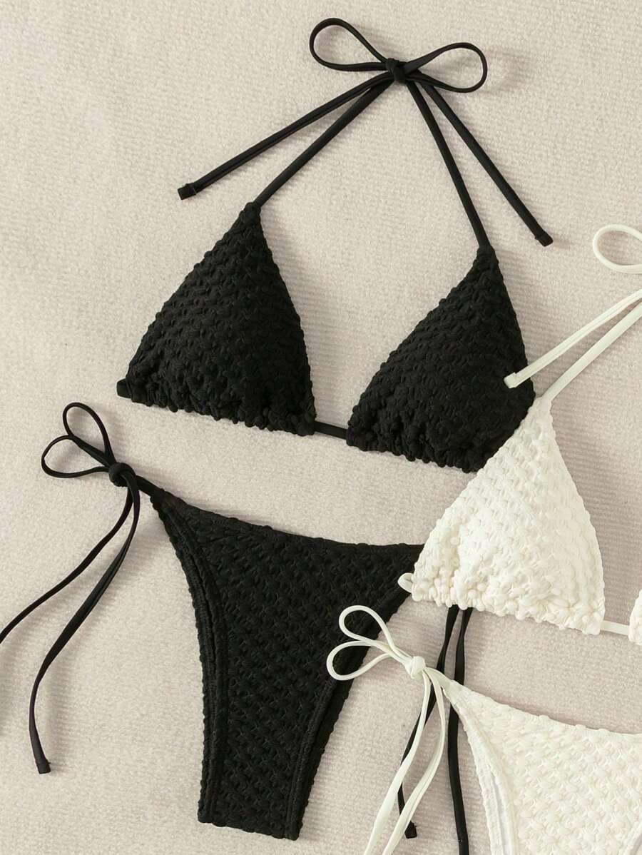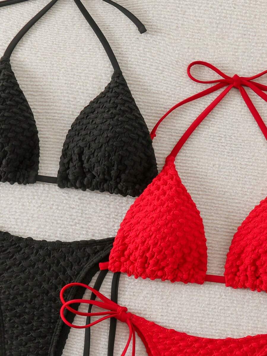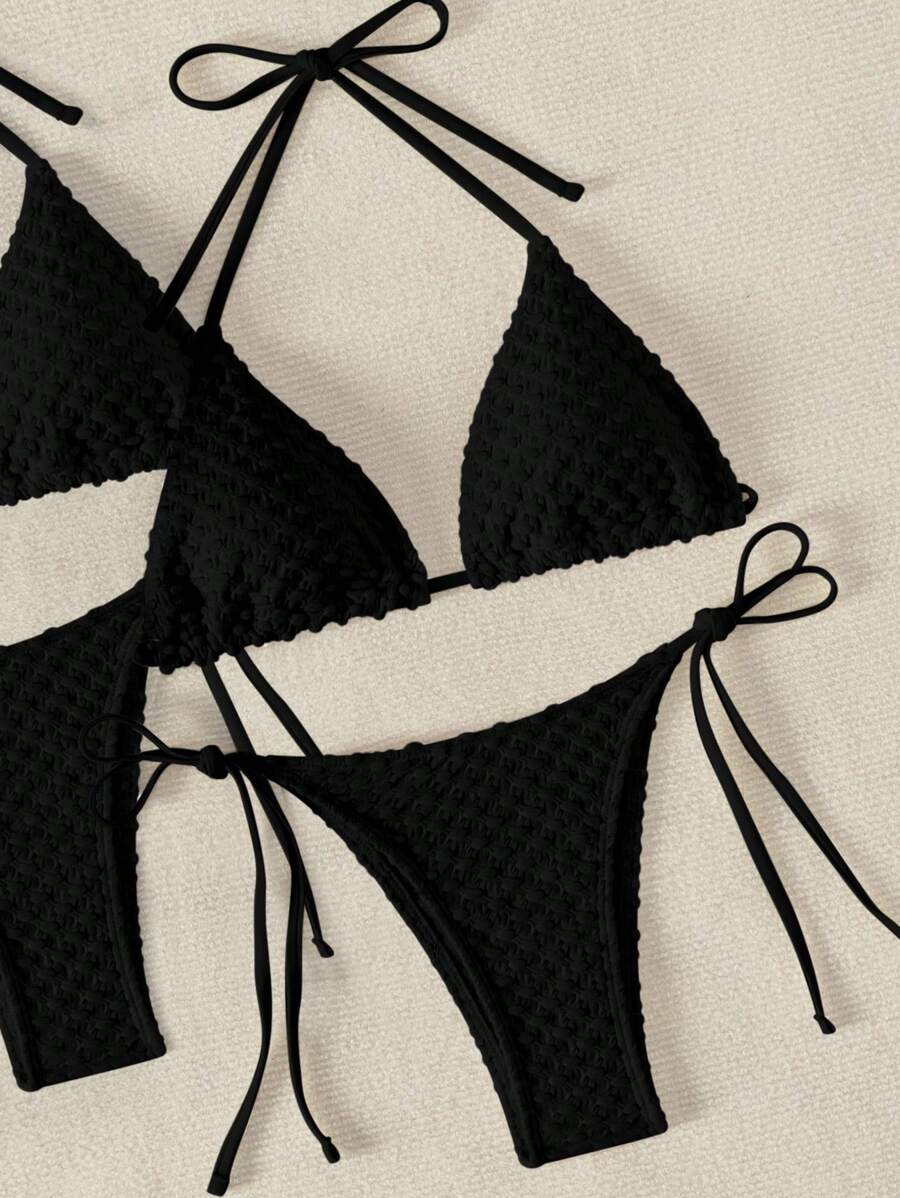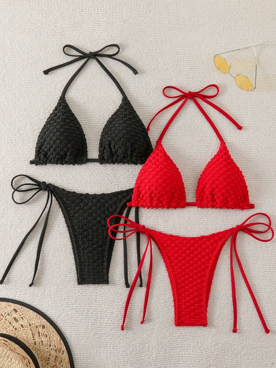 Bikini de 2 piezas de unicolor con escote halter y lazo sexy para muje – Muy Bonita