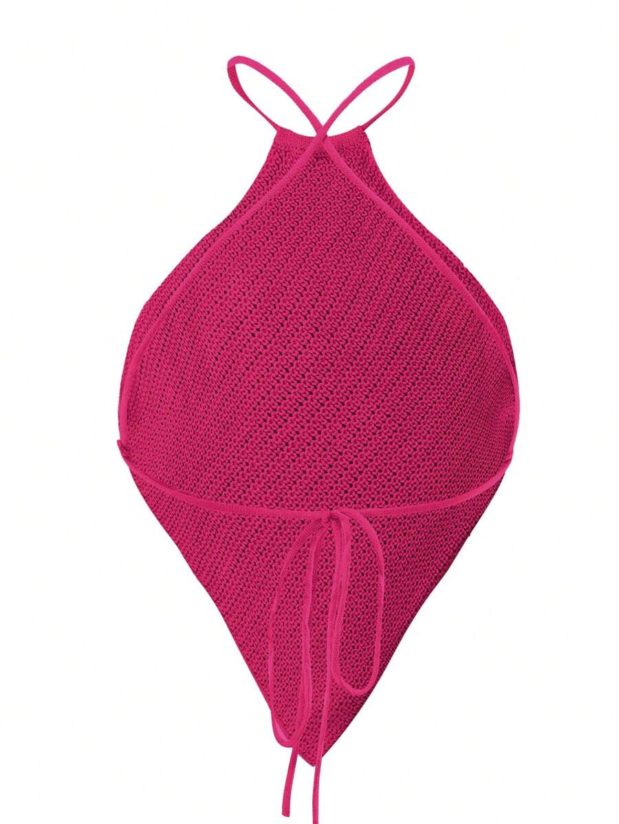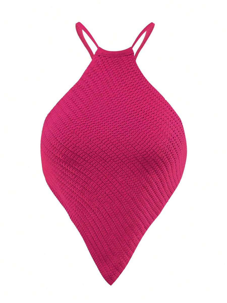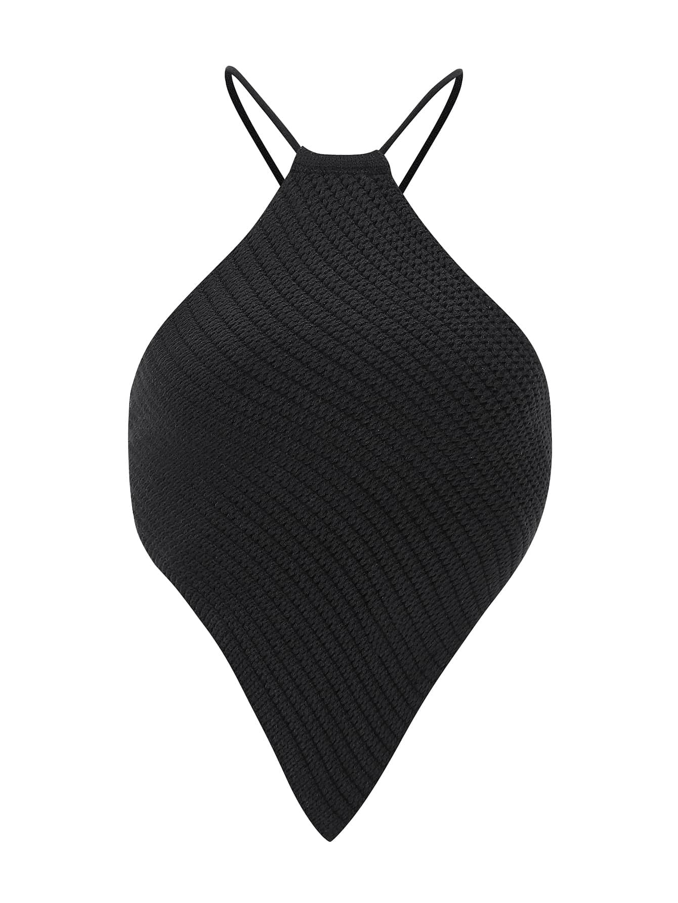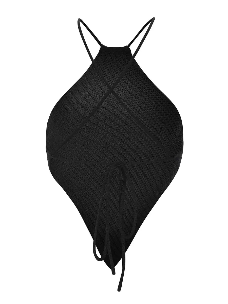 Chiquease top de punto unicolor de espalda abierta con cordon bajo asimetrico