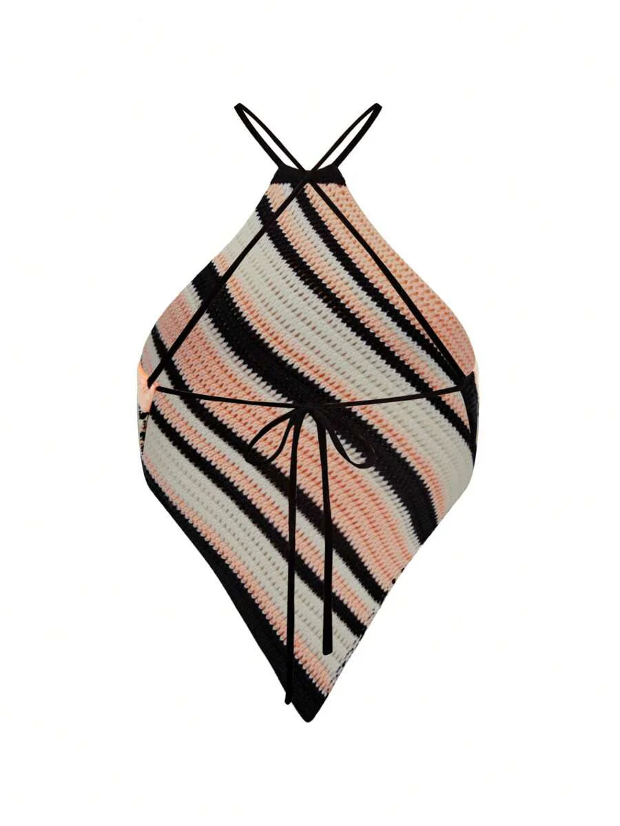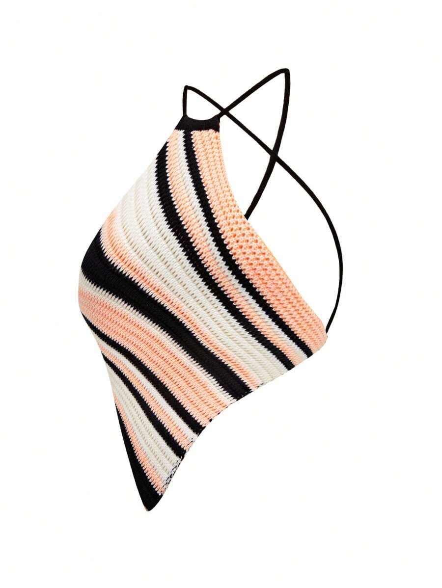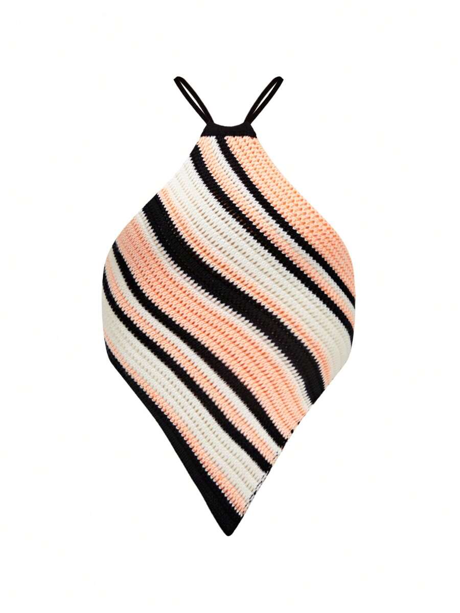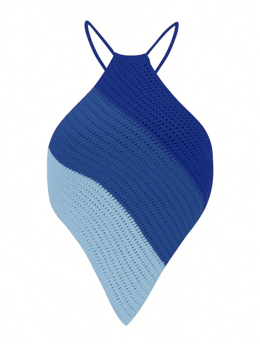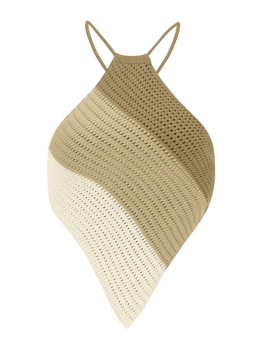 Chiquease top de punto unicolor de espalda abierta con cordon bajo asimetrico