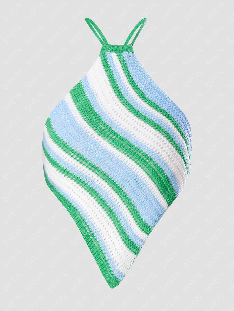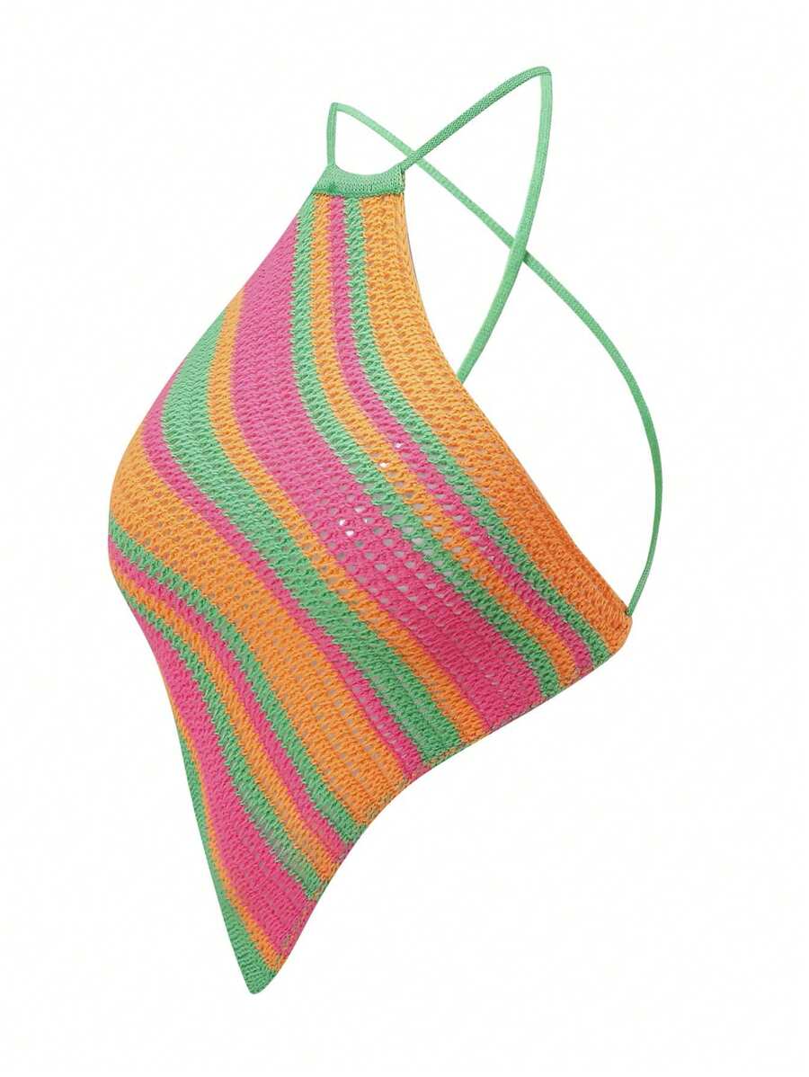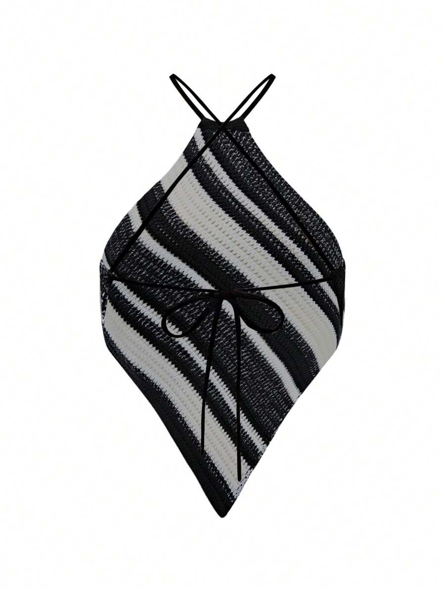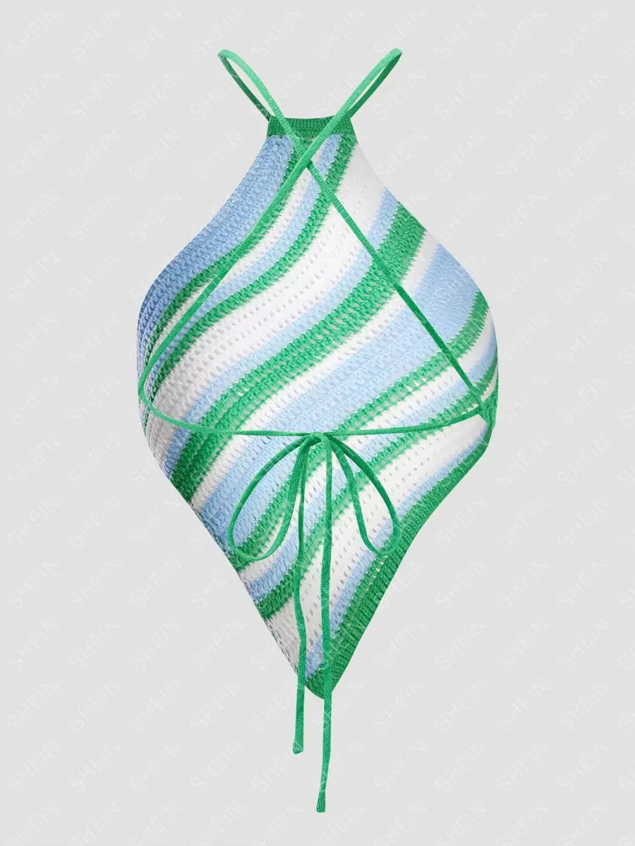 Chiquease top de punto unicolor de espalda abierta con cordon bajo asimetrico