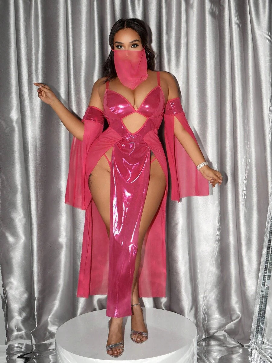 Fantasy costume conjunto de 6 piezas de lenceria sexy con parches de malla para tallas grandes
