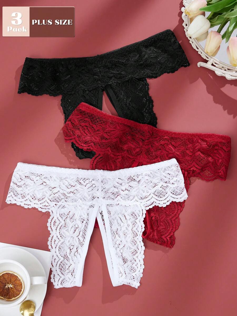 3 piezas de bragas de talla grande con abertura en la entrepierna para lenceria transparente sexy de mujer, tipo tanga elastico