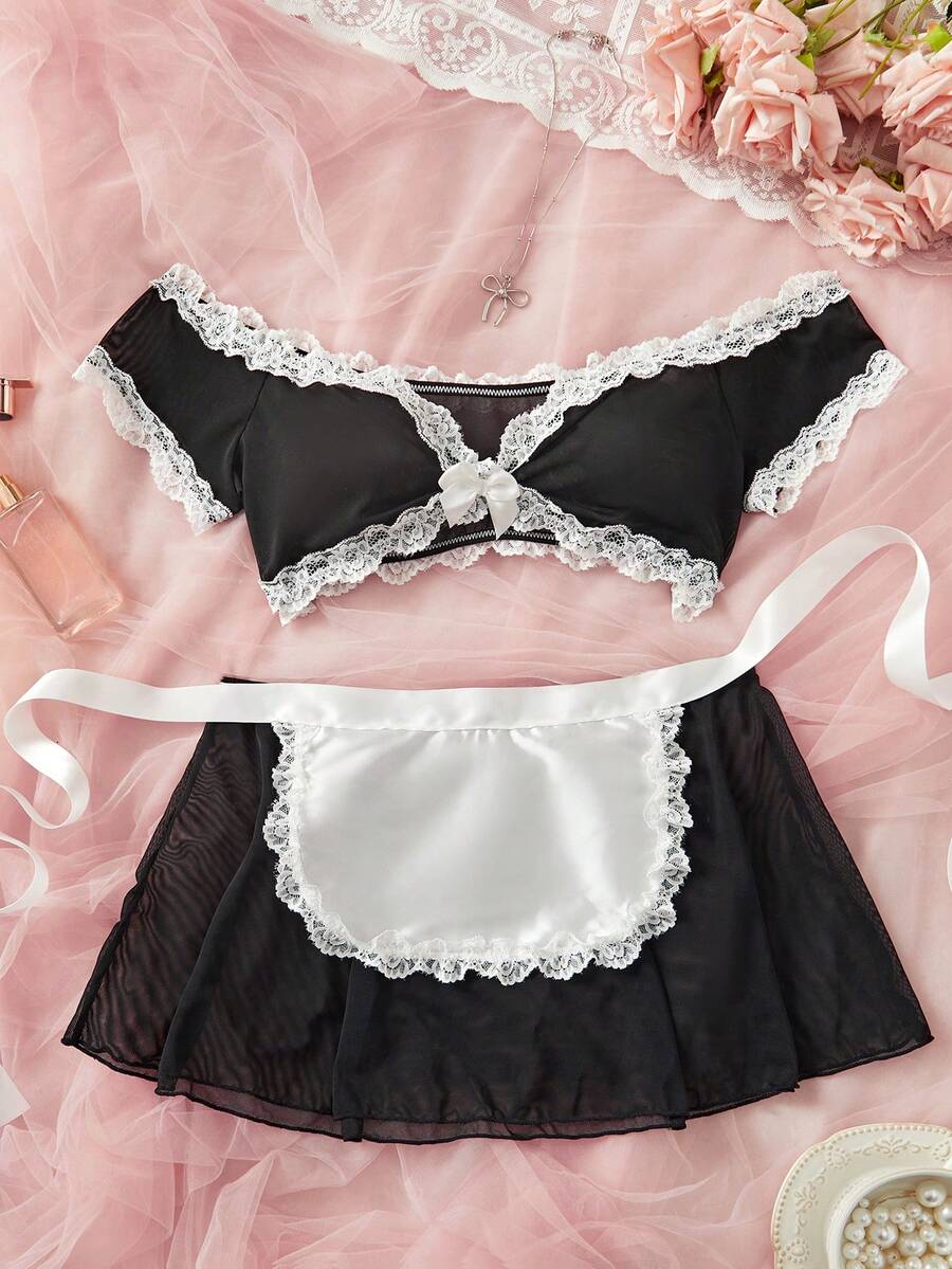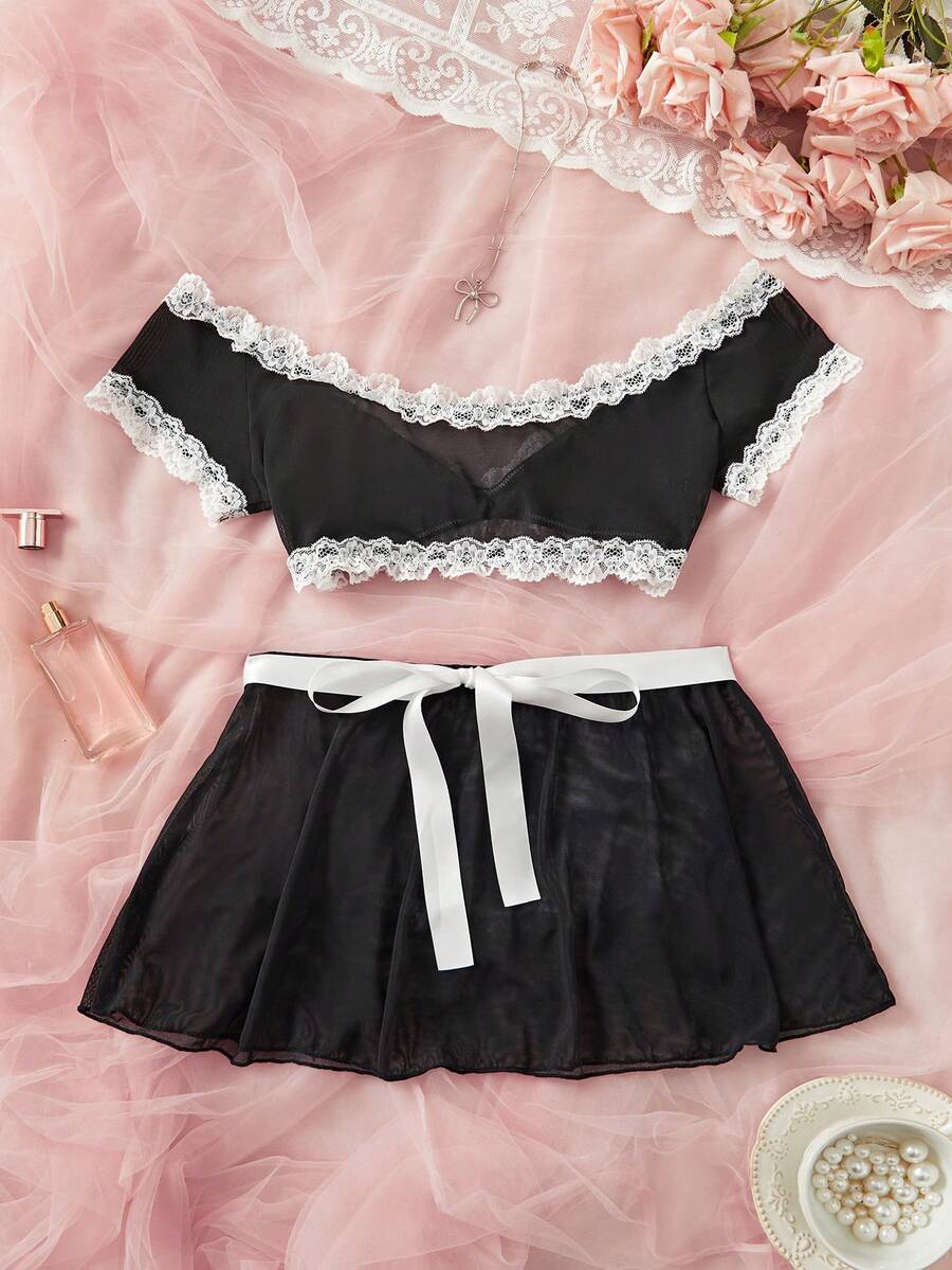 Detalles: Lazo, Encaje en contraste, Gasa, Transparente