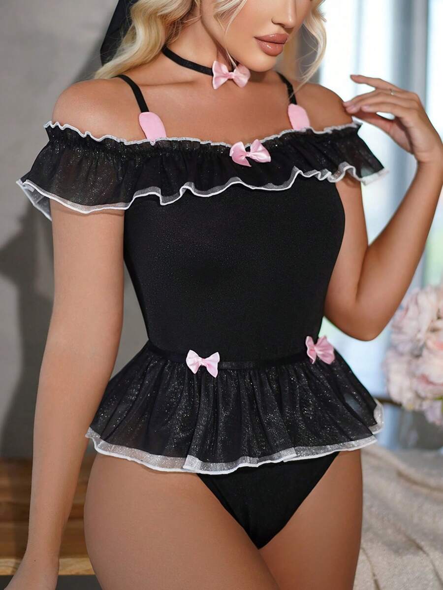Conjunto de lenceria sexy para mujer con body de hombros descubiertos – Muy Bonita