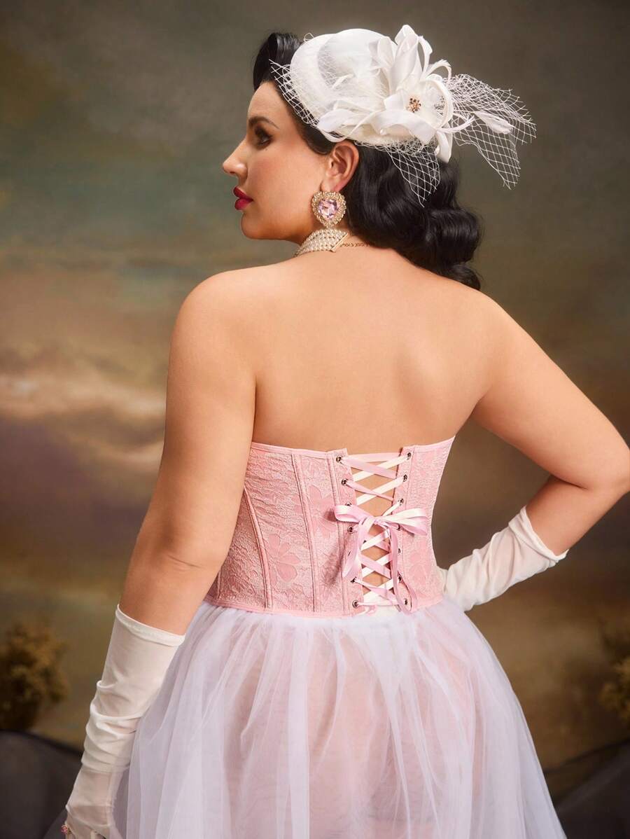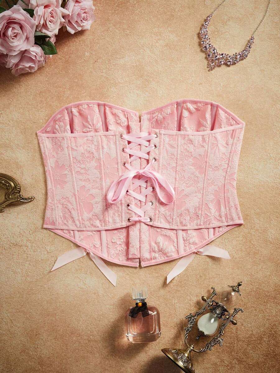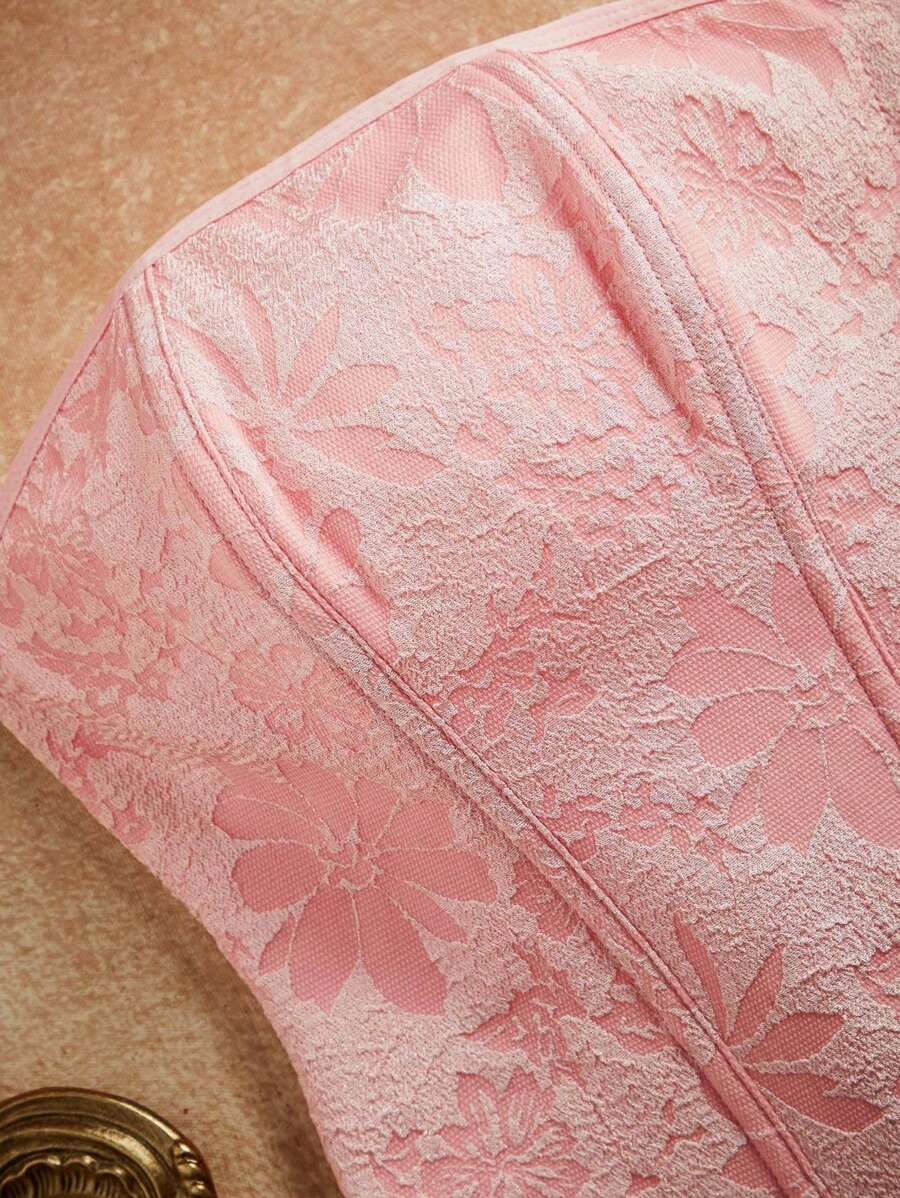 Detalles: Espalda al aire, Cordon, Lazo delantero, Damasco, Con Varillas, Cintura Ajustada