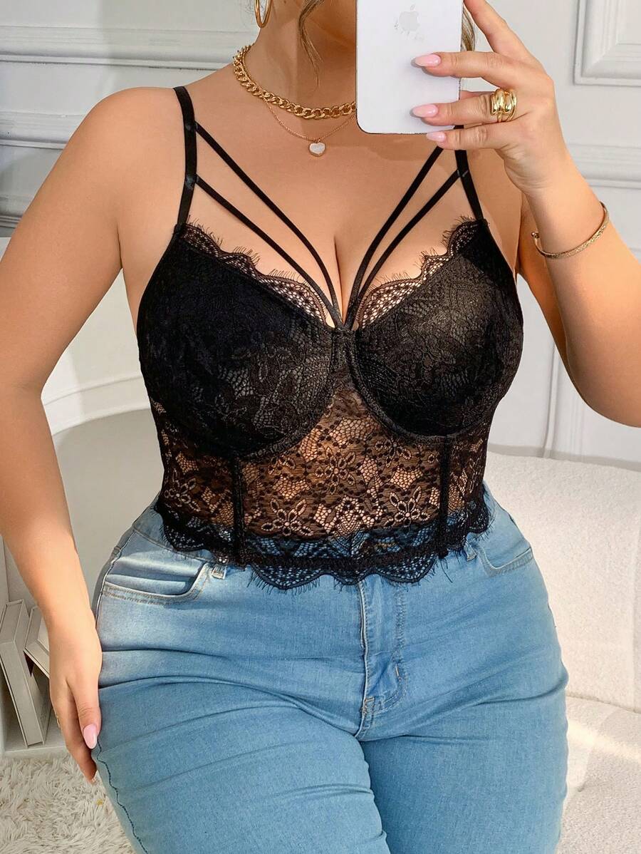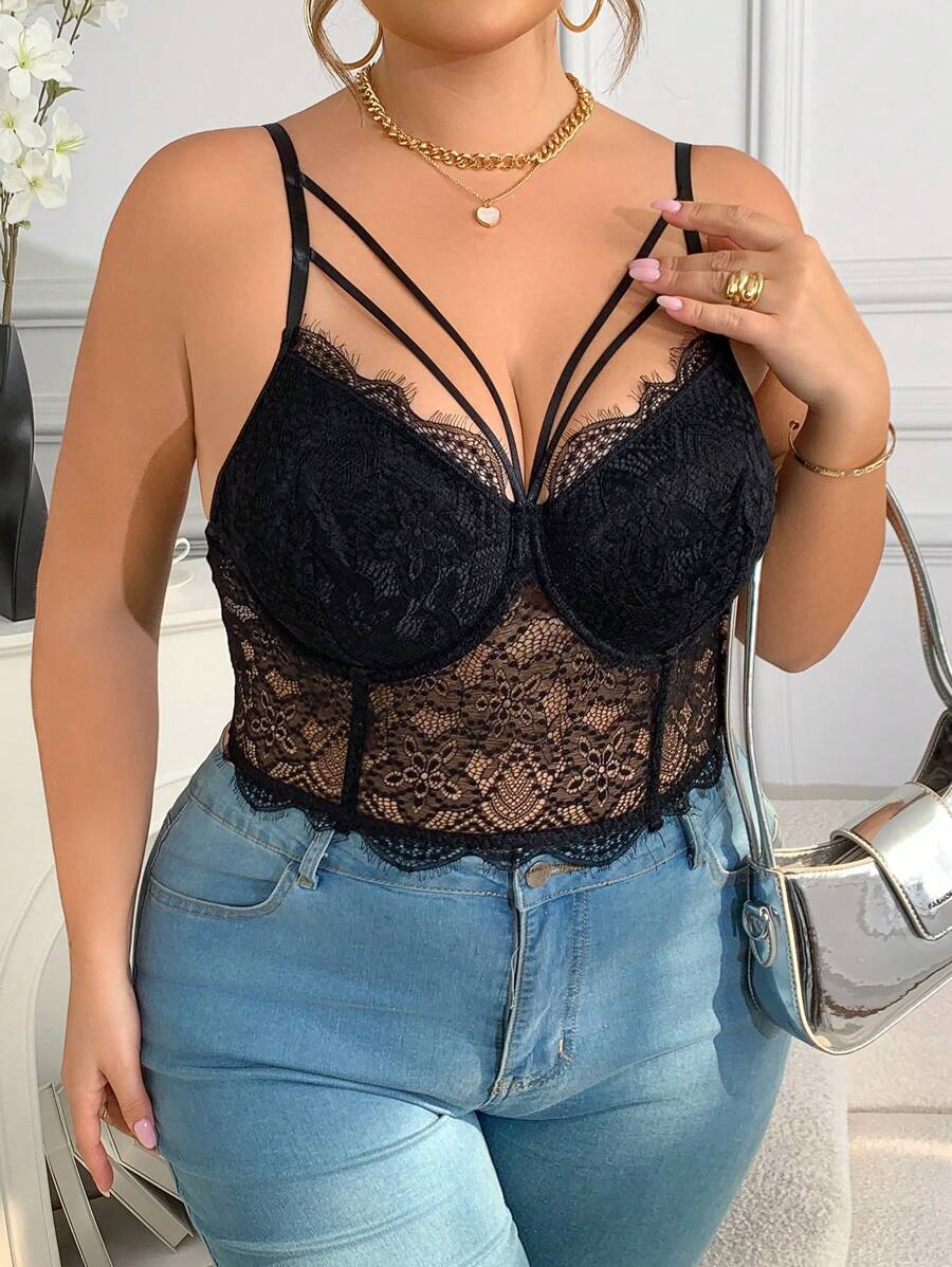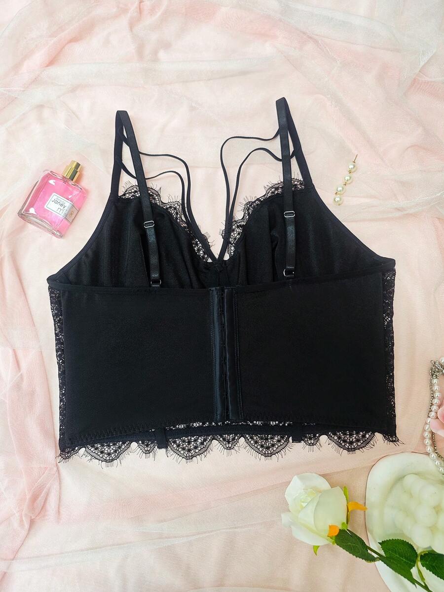 1 pieza top de corse recortado con cordones y ballenas, diseno de espi – Muy Bonita