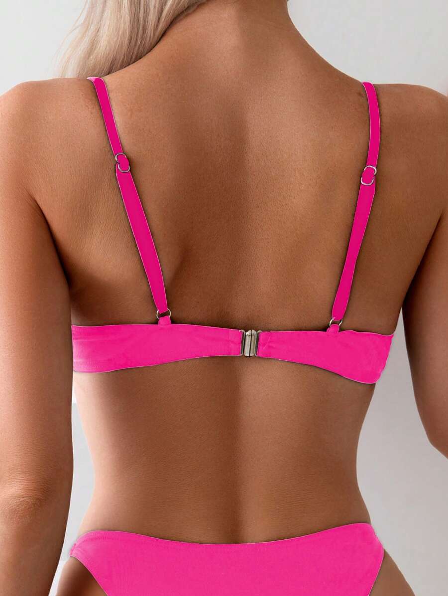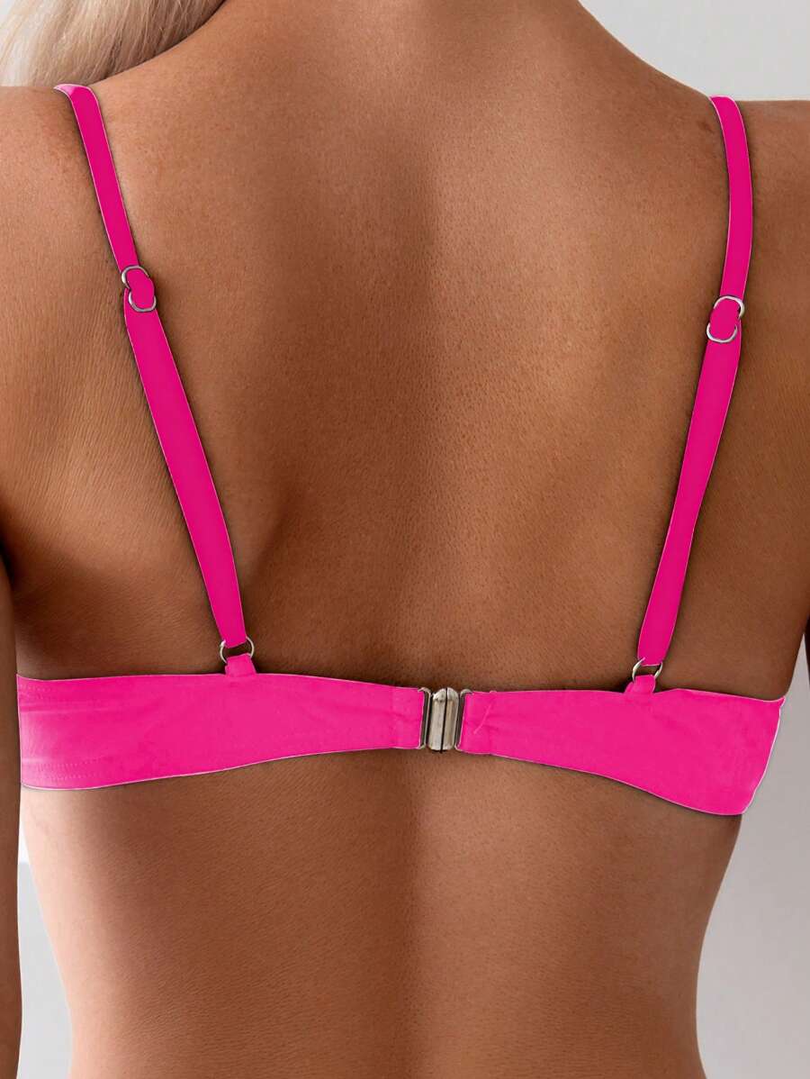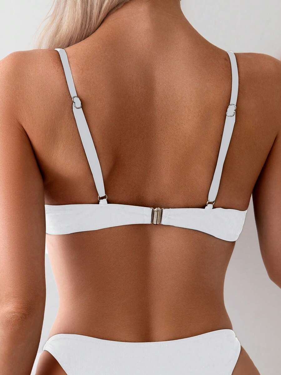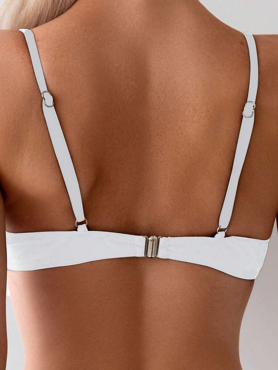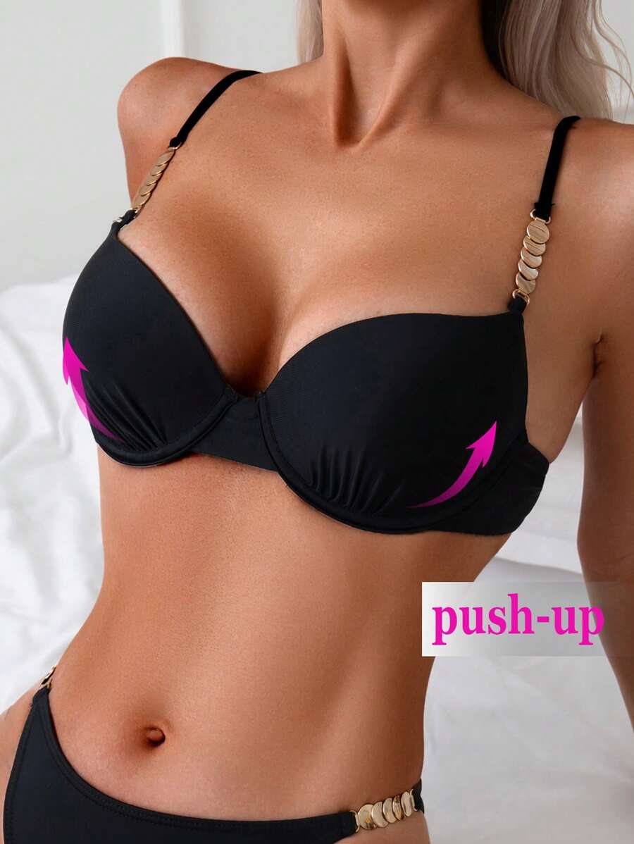 Top de bikini de mujer para verano y vacaciones en la playa, de unicolor, sexy, con push up y detalles de accesorios metalicos de moda