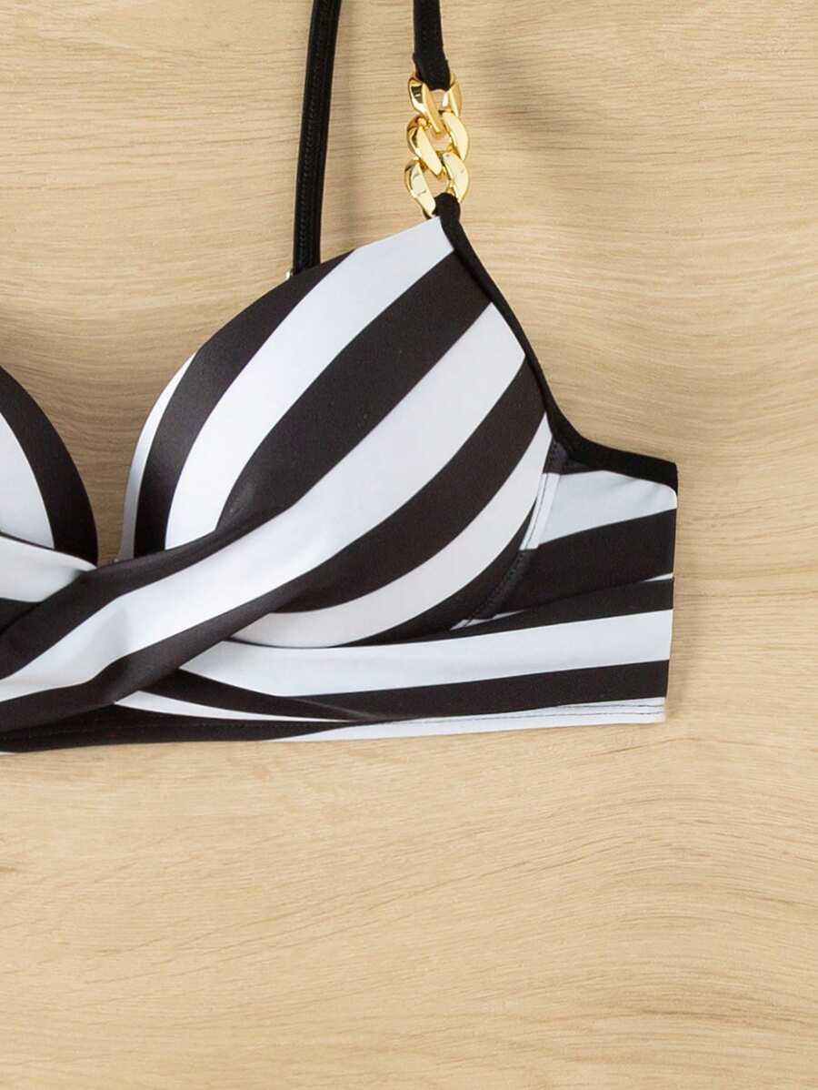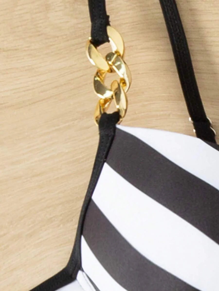 Top de bikini decorado con detalles metalicos para la playa, vacaciones