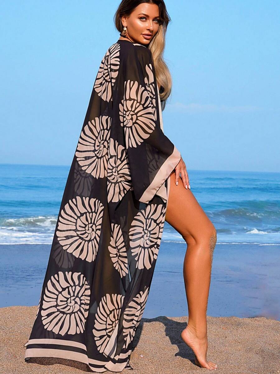 Vestido largo de gasa con estampado, de manga larga, holgado y oversize, para cubrir en la playa o de vacaciones