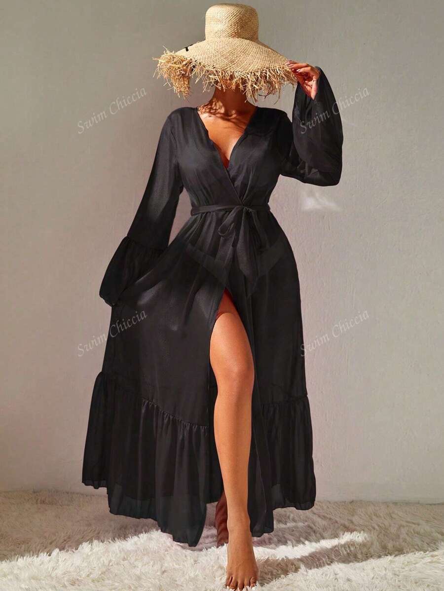 Kimono con volantes en las mangas y el bajo, con cinturon, para el verano y la playa