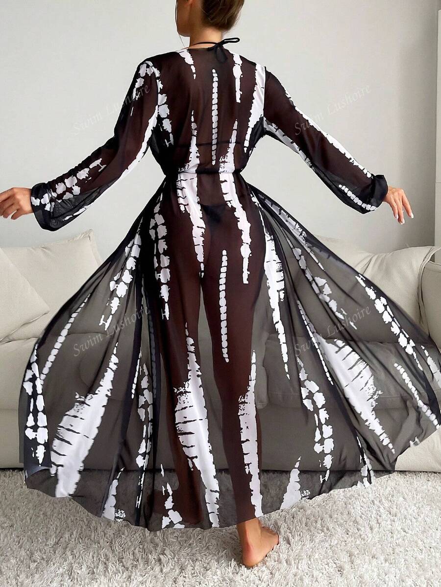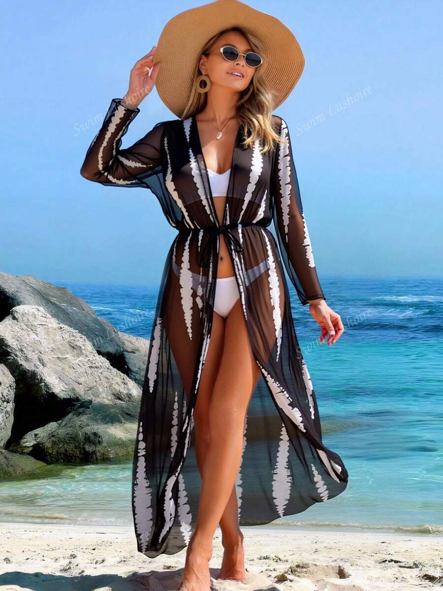 Lushoire kimono de malla con cintura de cordon y estampado tie-dye para el verano