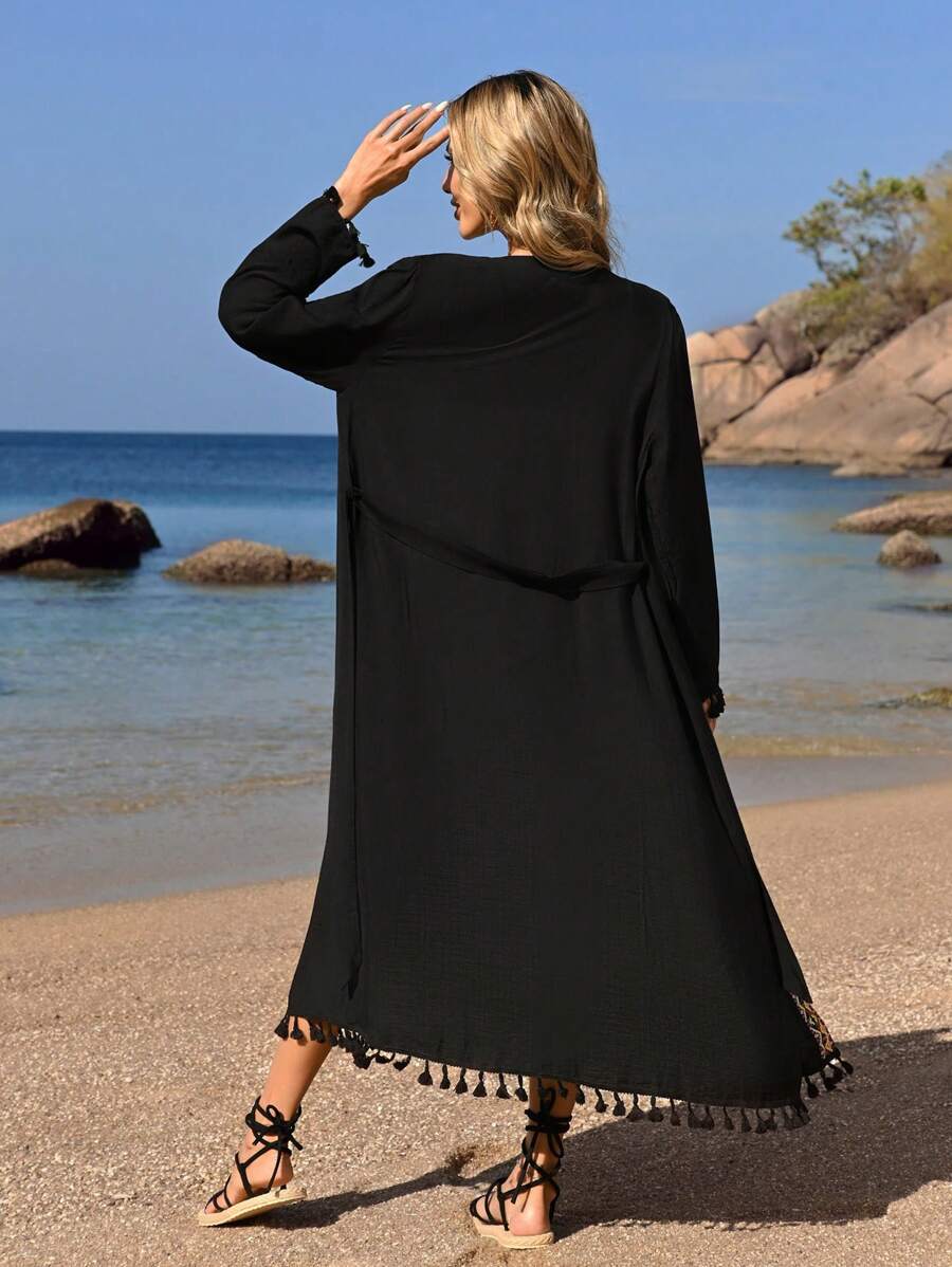 Kimono de verano para mujer con cinturon tejido geometrico de empalme – Muy Bonita