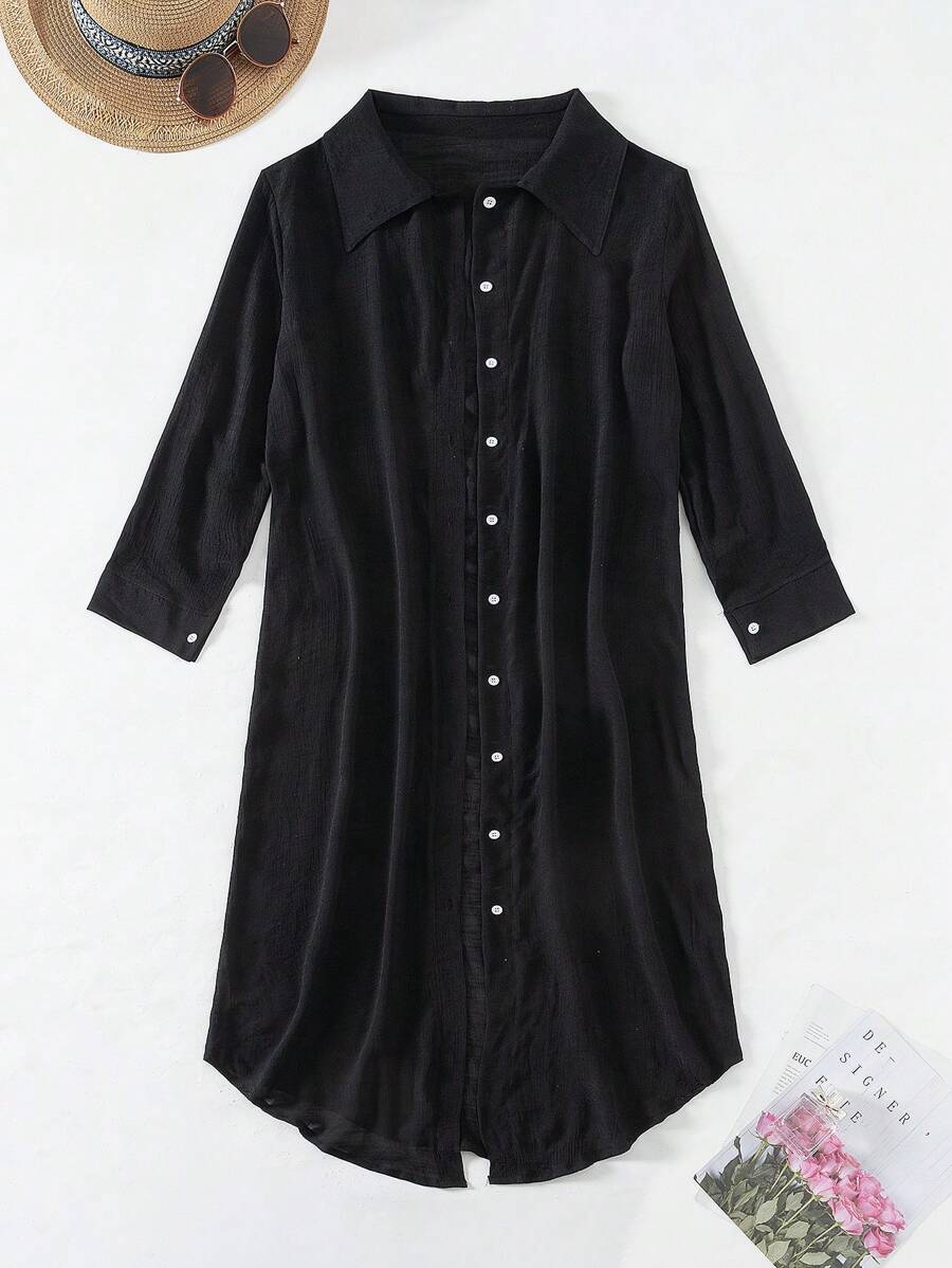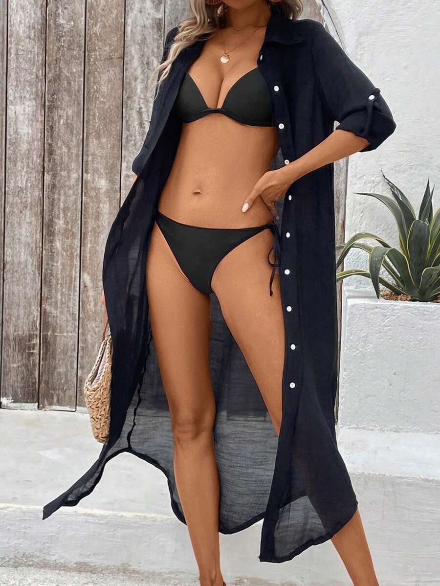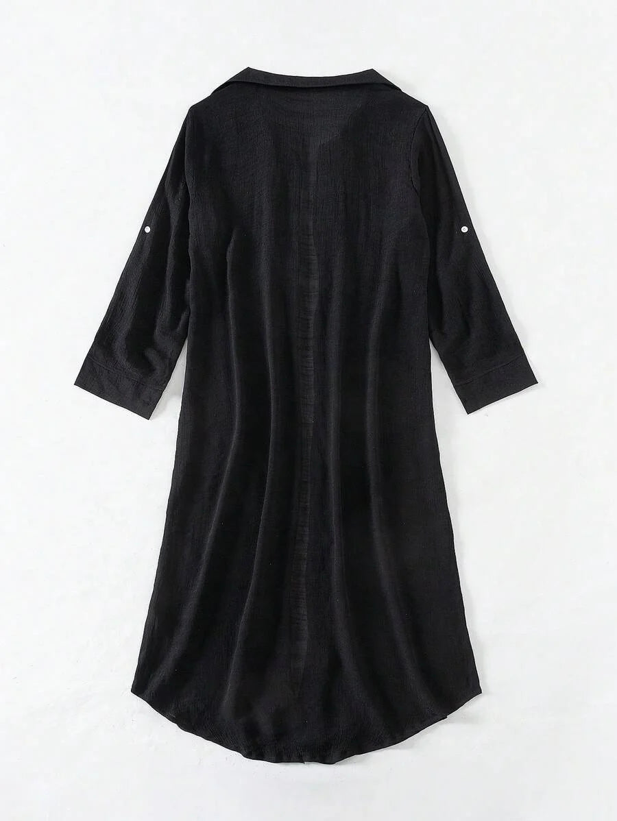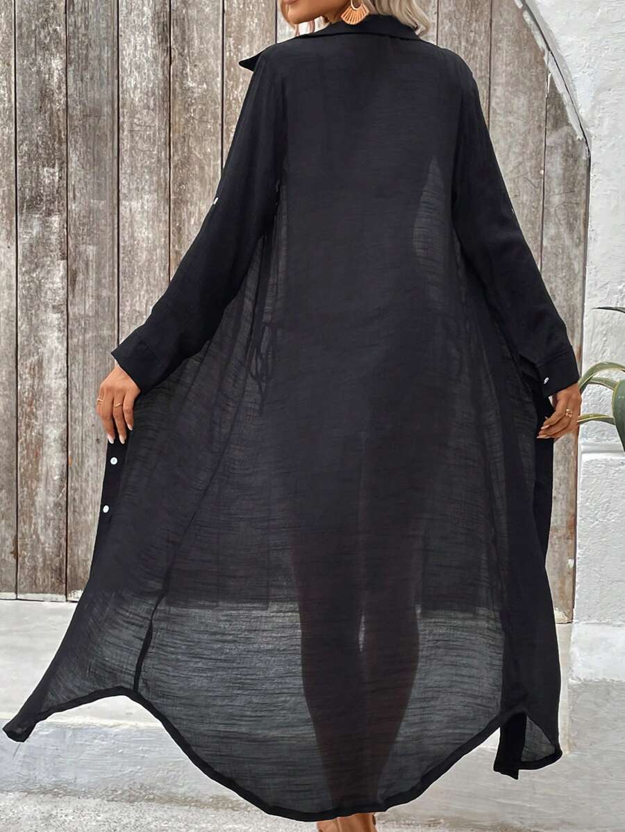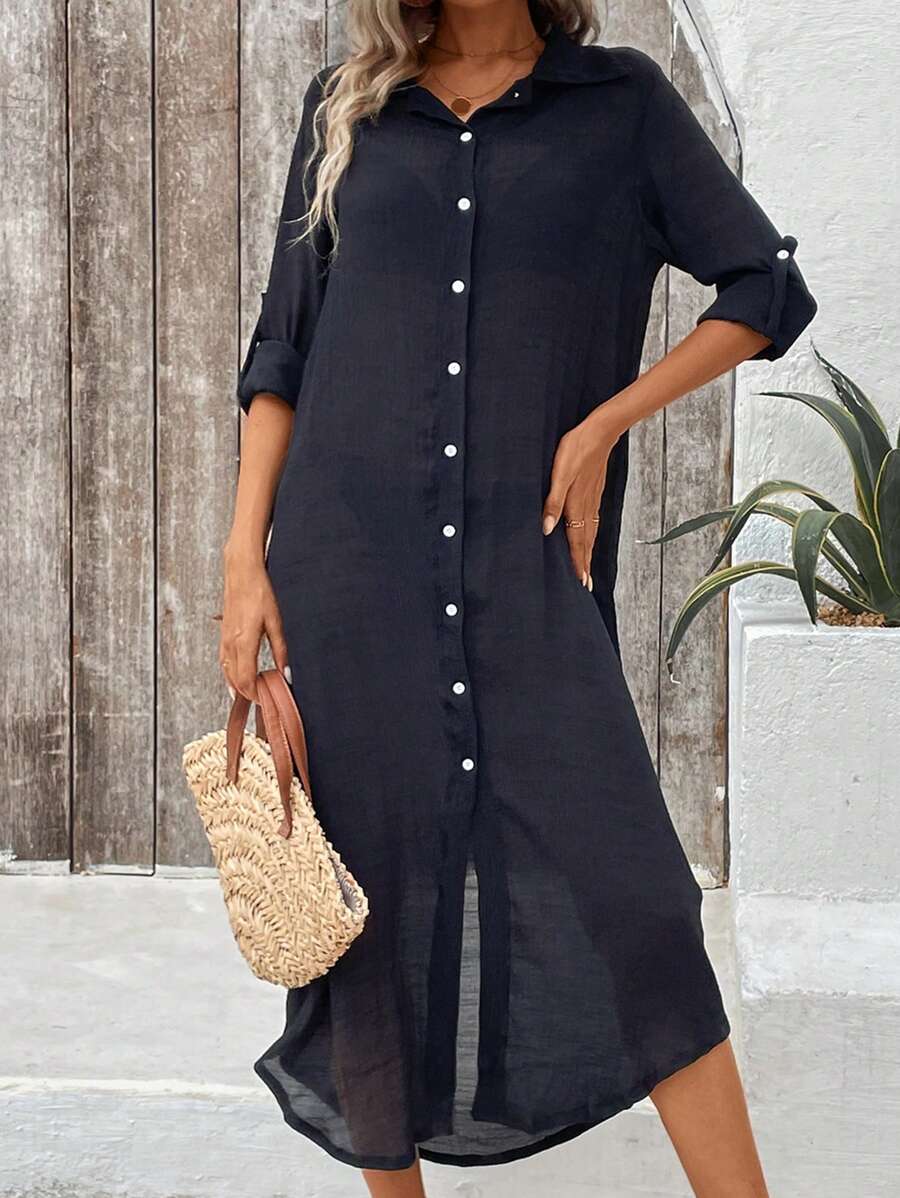 Camisa kimono solida con botones al frente para mujer, ideal para vacaciones de verano en la playa