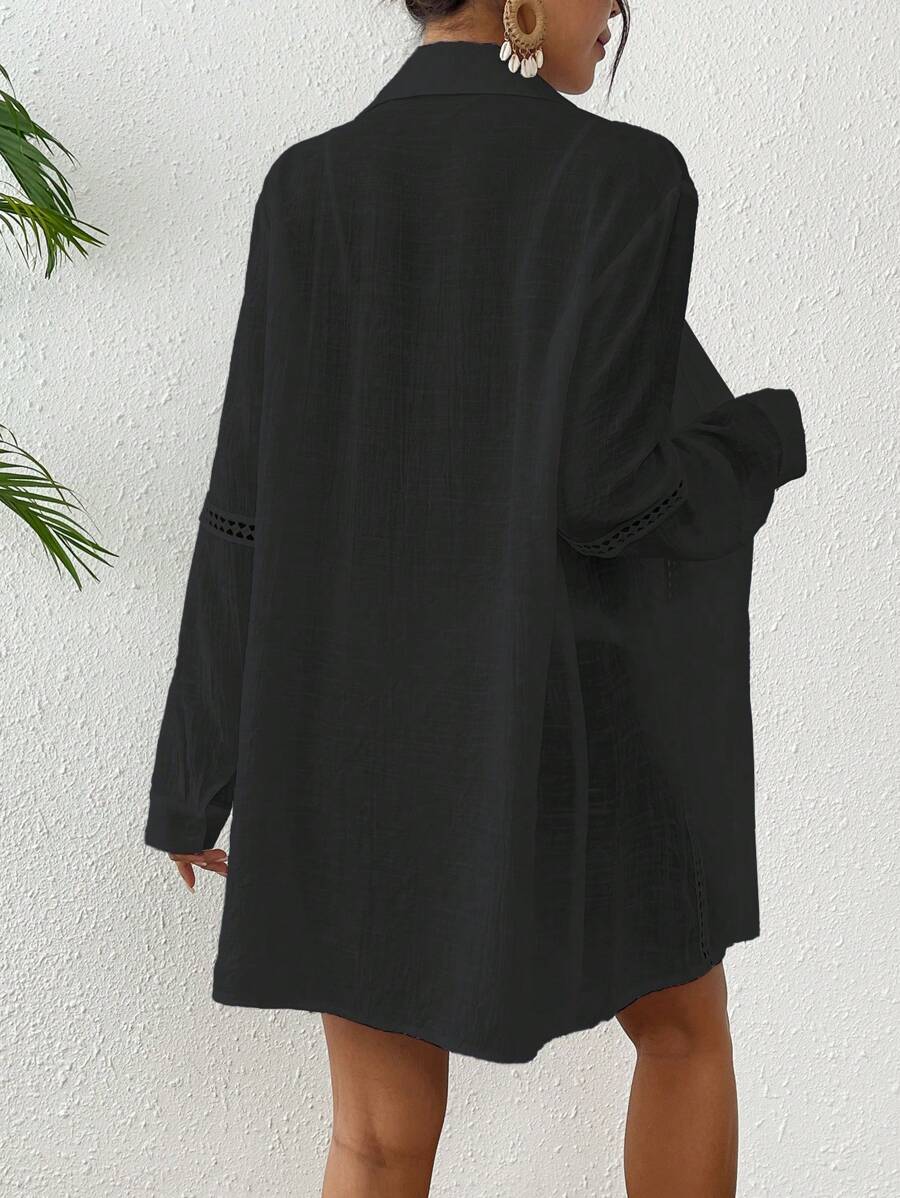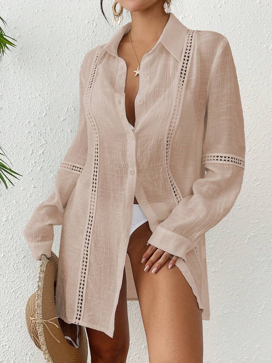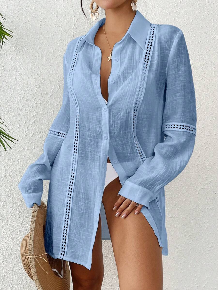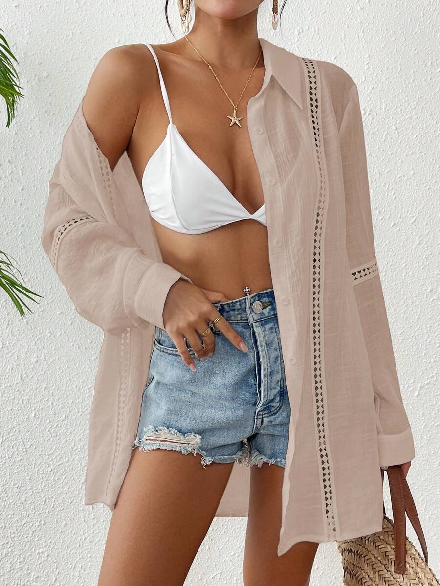 Kimono de manga larga con botones de un solo color informal, para cubrir en el verano, vacaciones en la playa