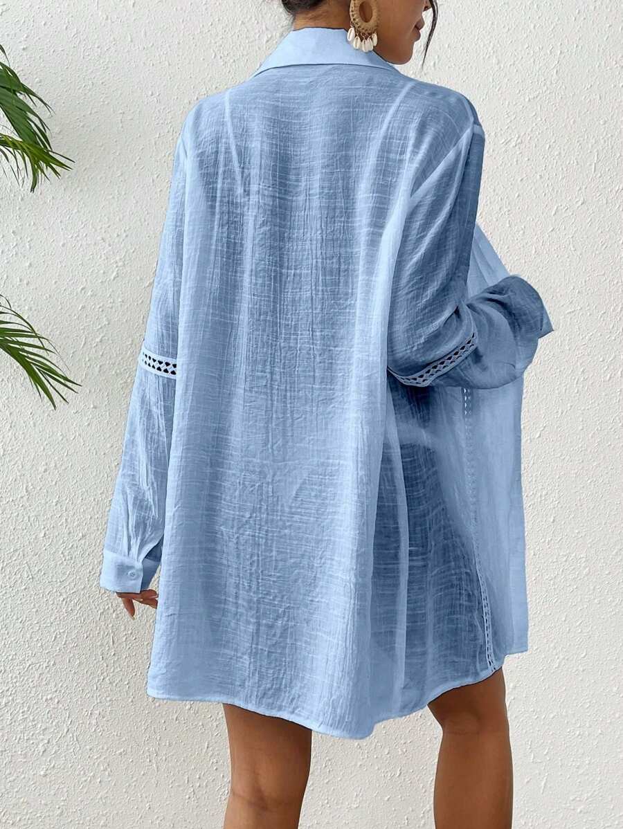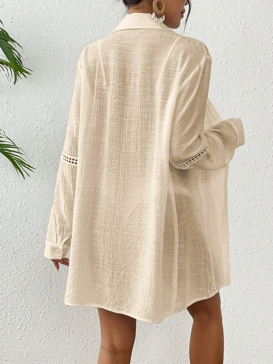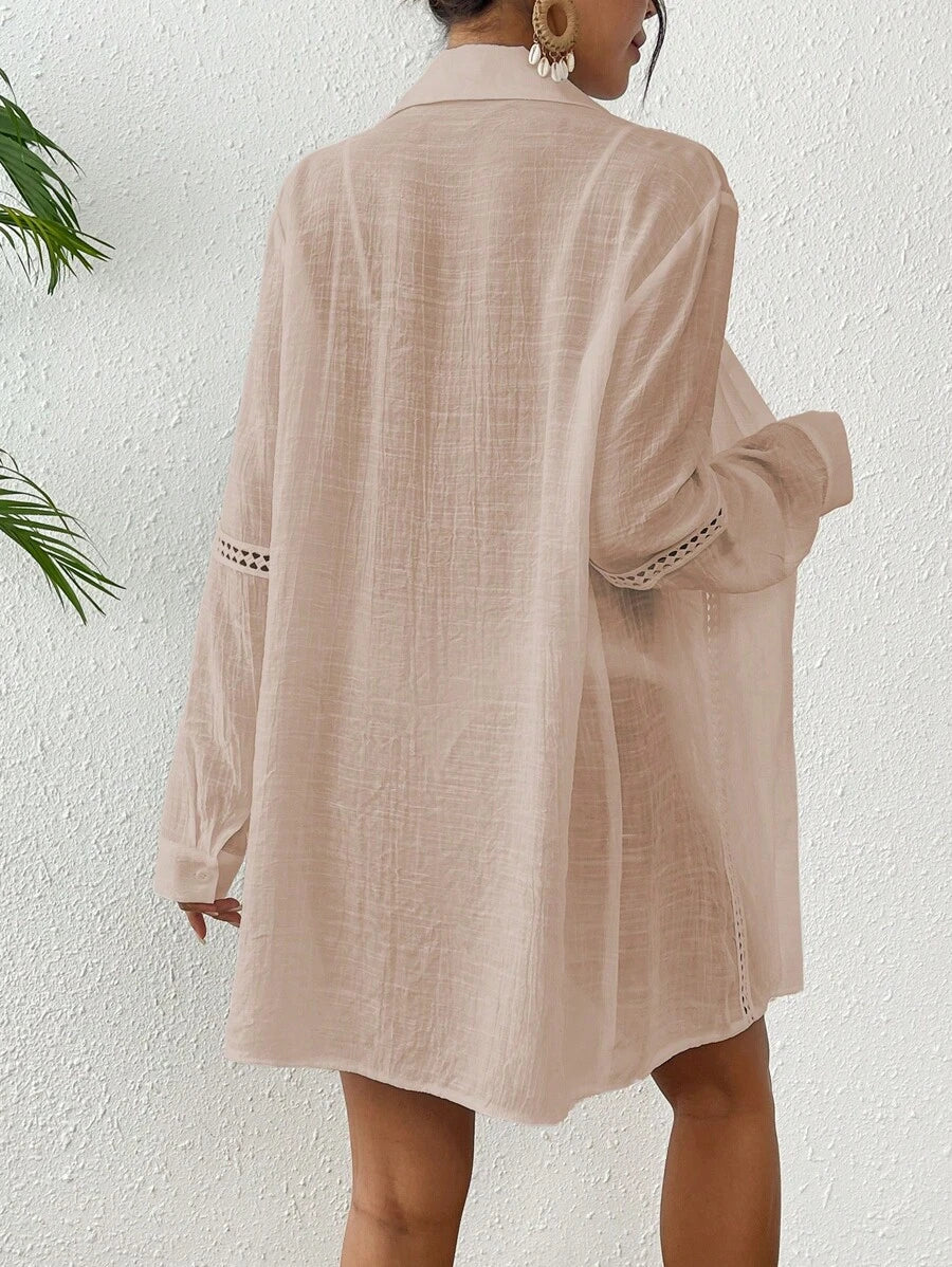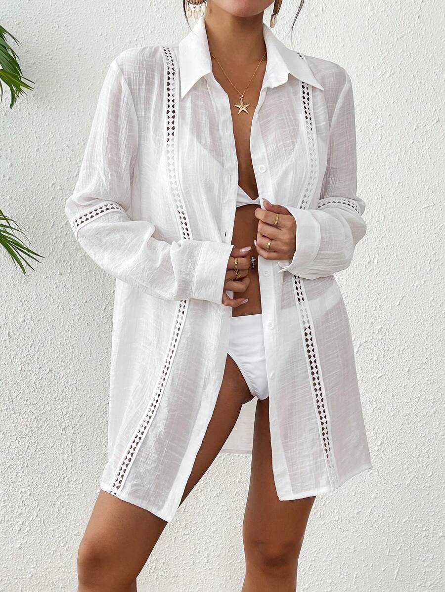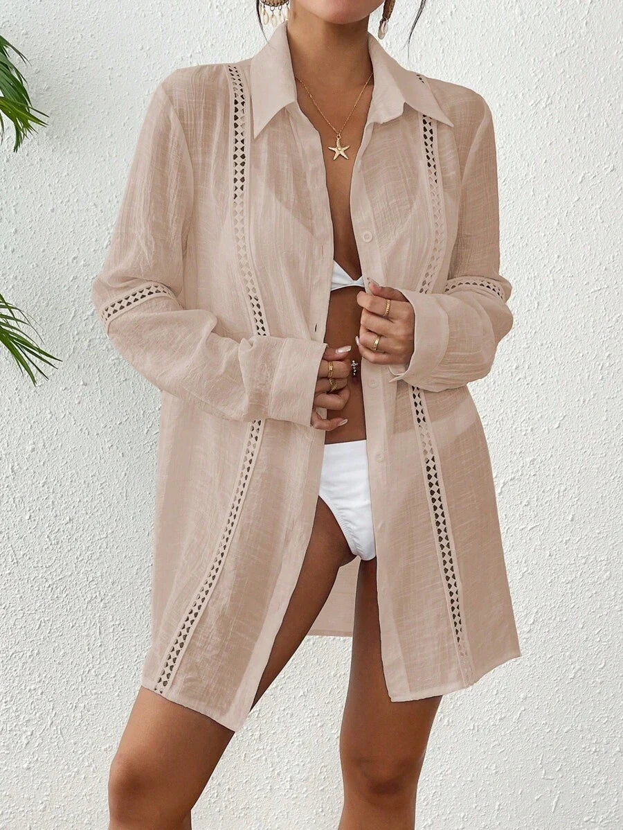 Kimono de manga larga con botones de un solo color informal, para cubrir en el verano, vacaciones en la playa