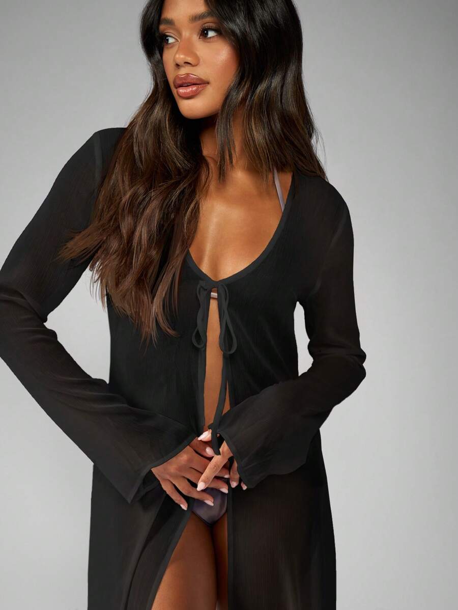 Bata larga y transparente de gasa, tipo kimono, vestimenta para playa, resort, borde de piscina, salon, vacaciones