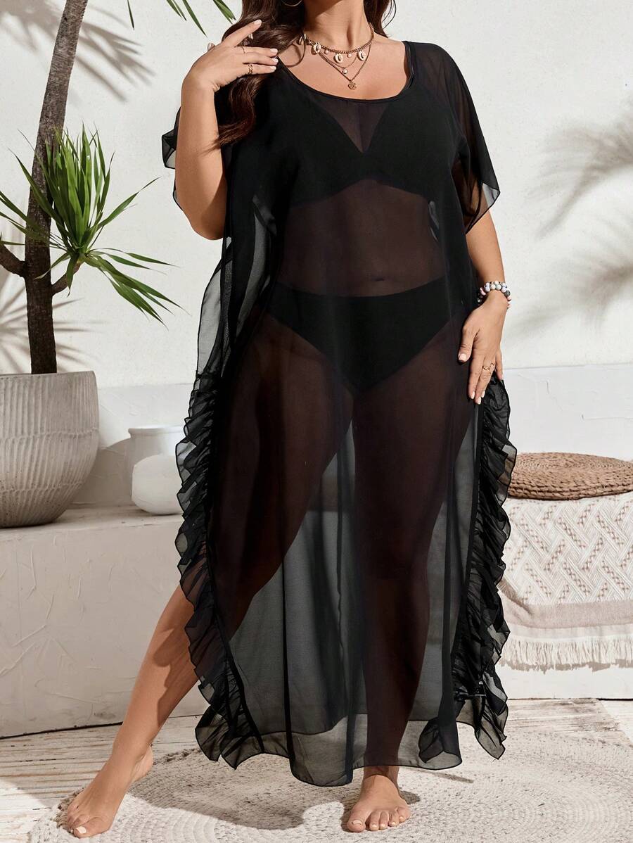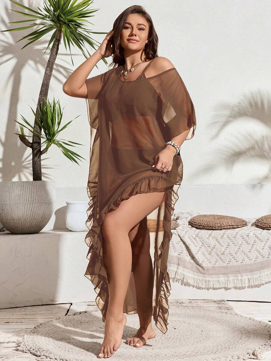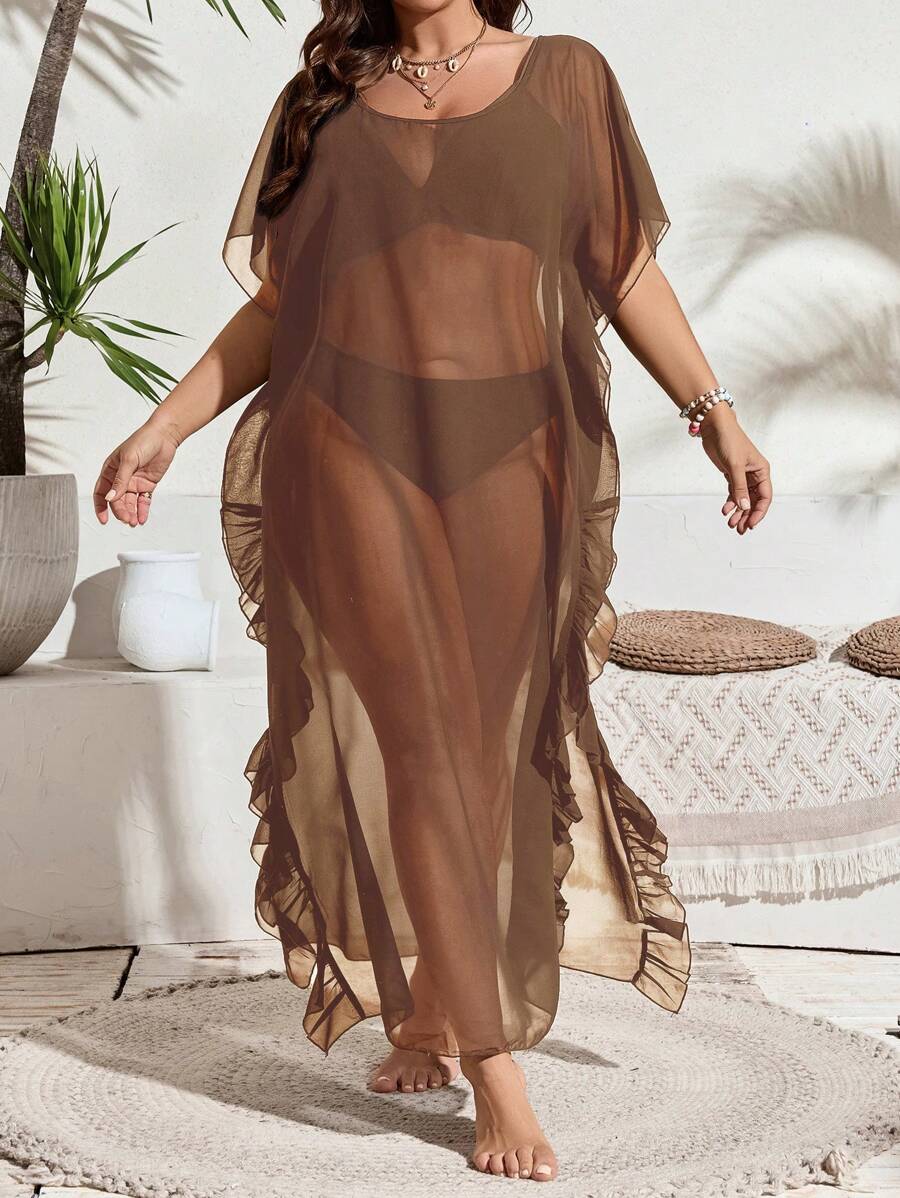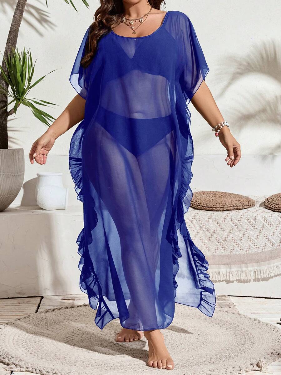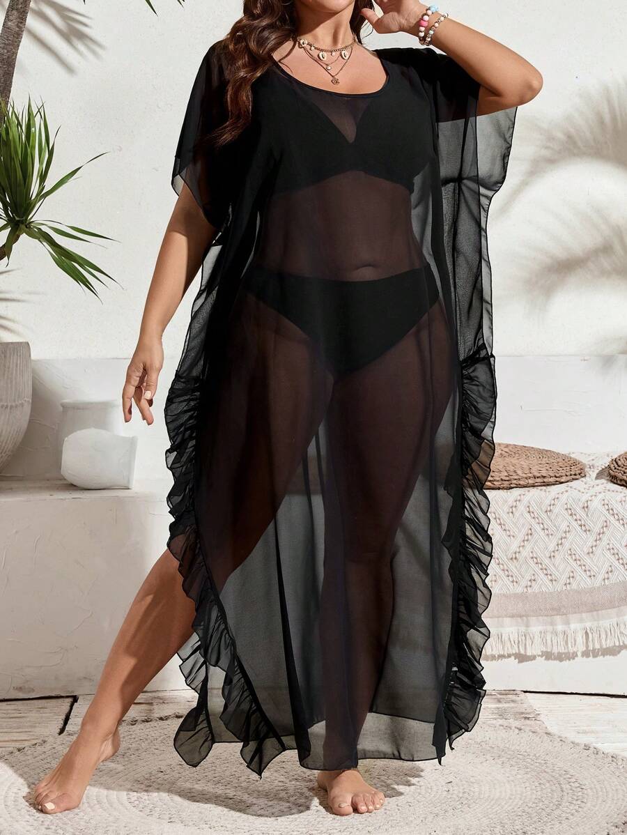 Lushoire cubrecuerpo transparente con volantes en el bajo, unicolor, talla grande para playa/resort