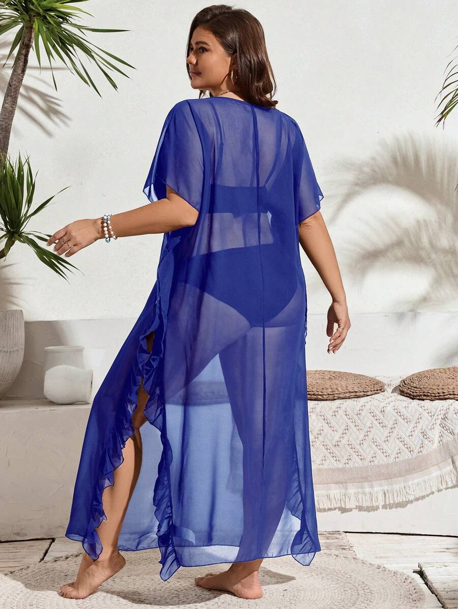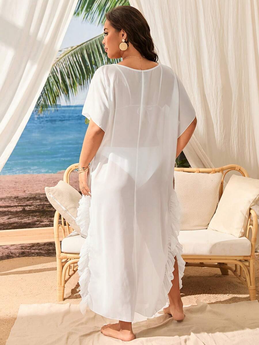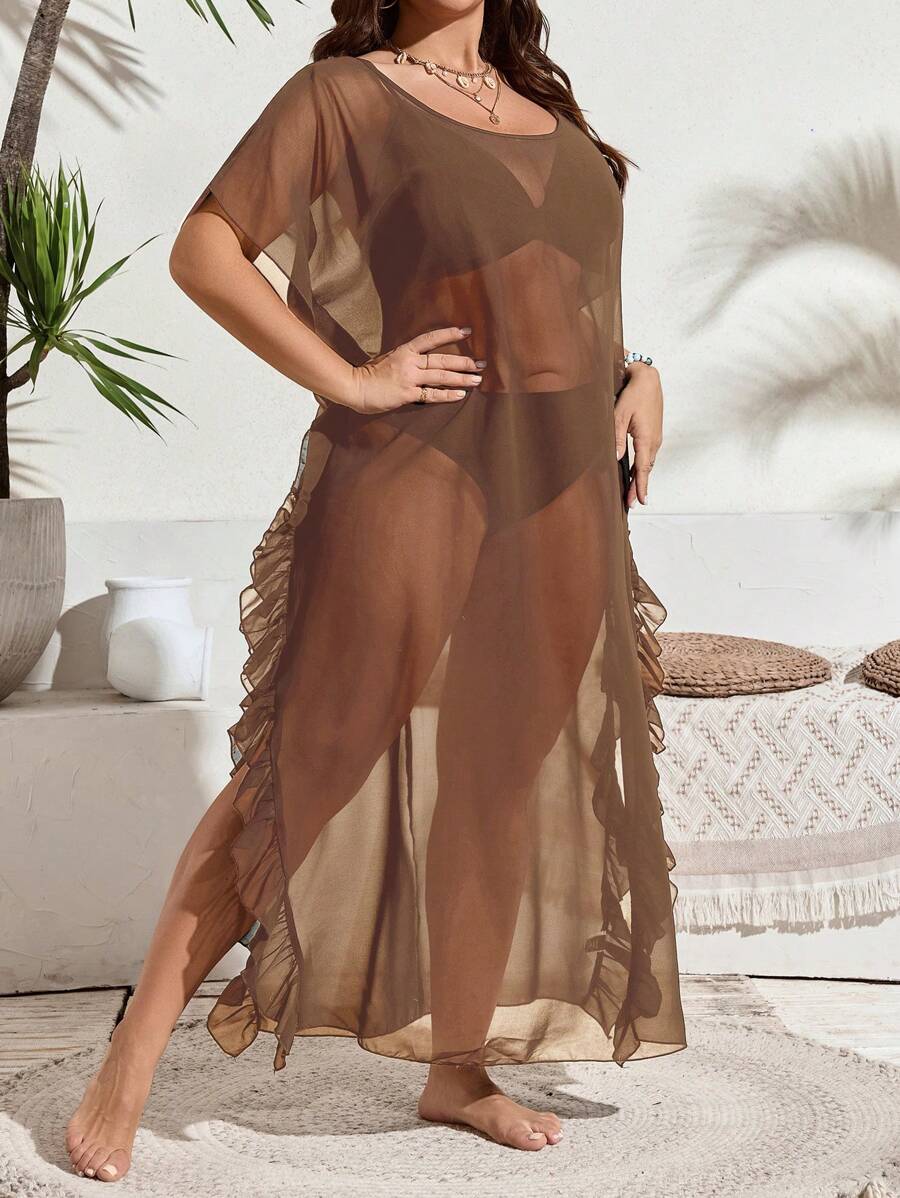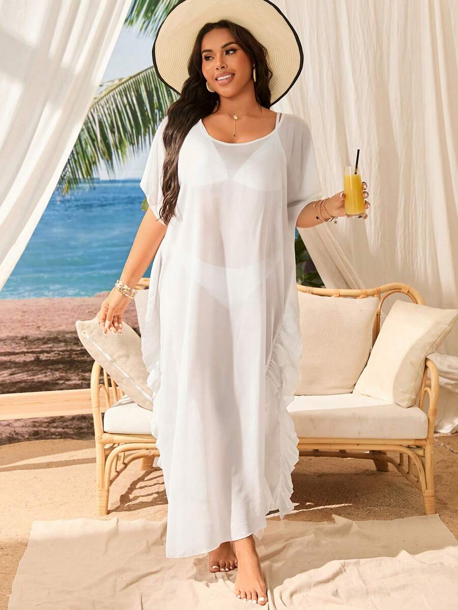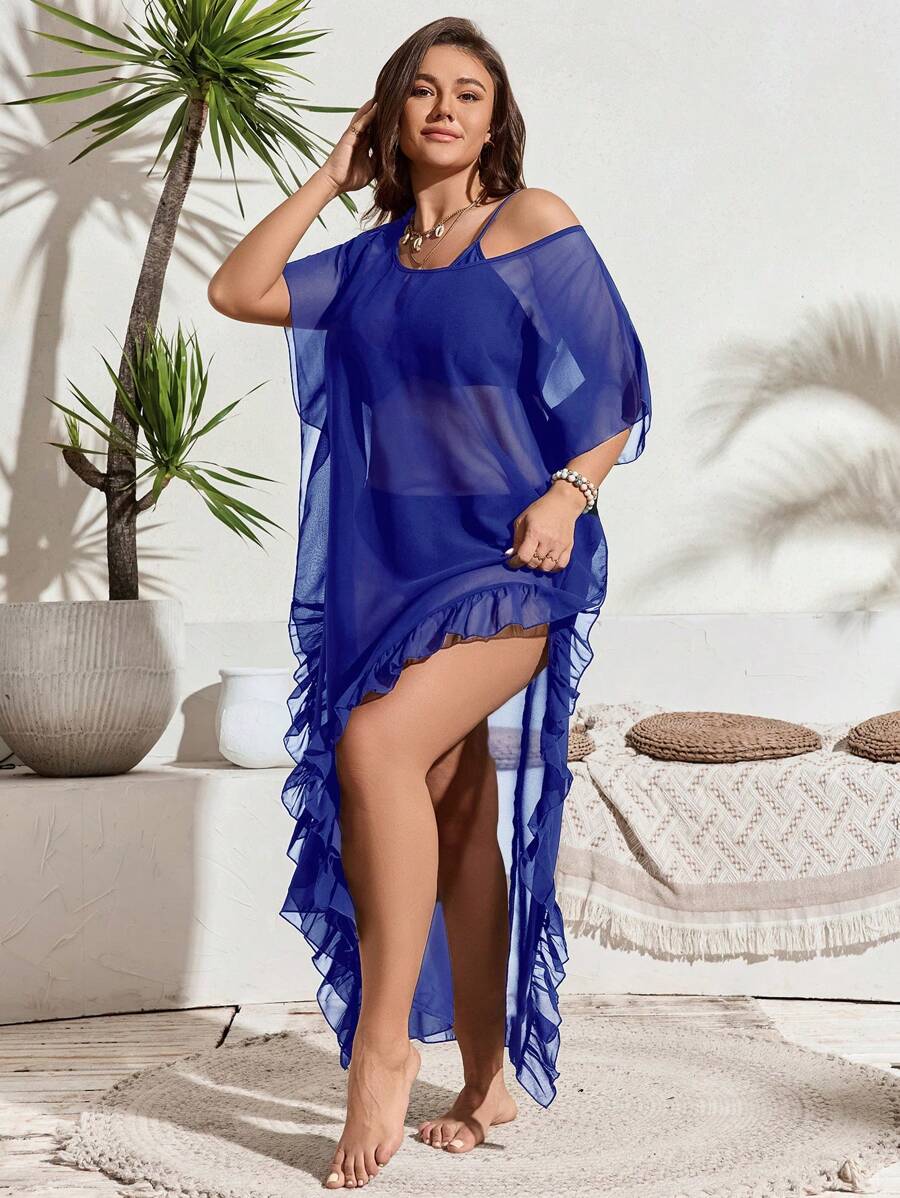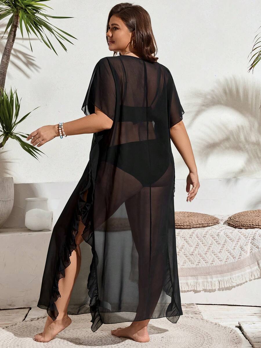 Lushoire cubrecuerpo transparente con volantes en el bajo, unicolor, talla grande para playa/resort