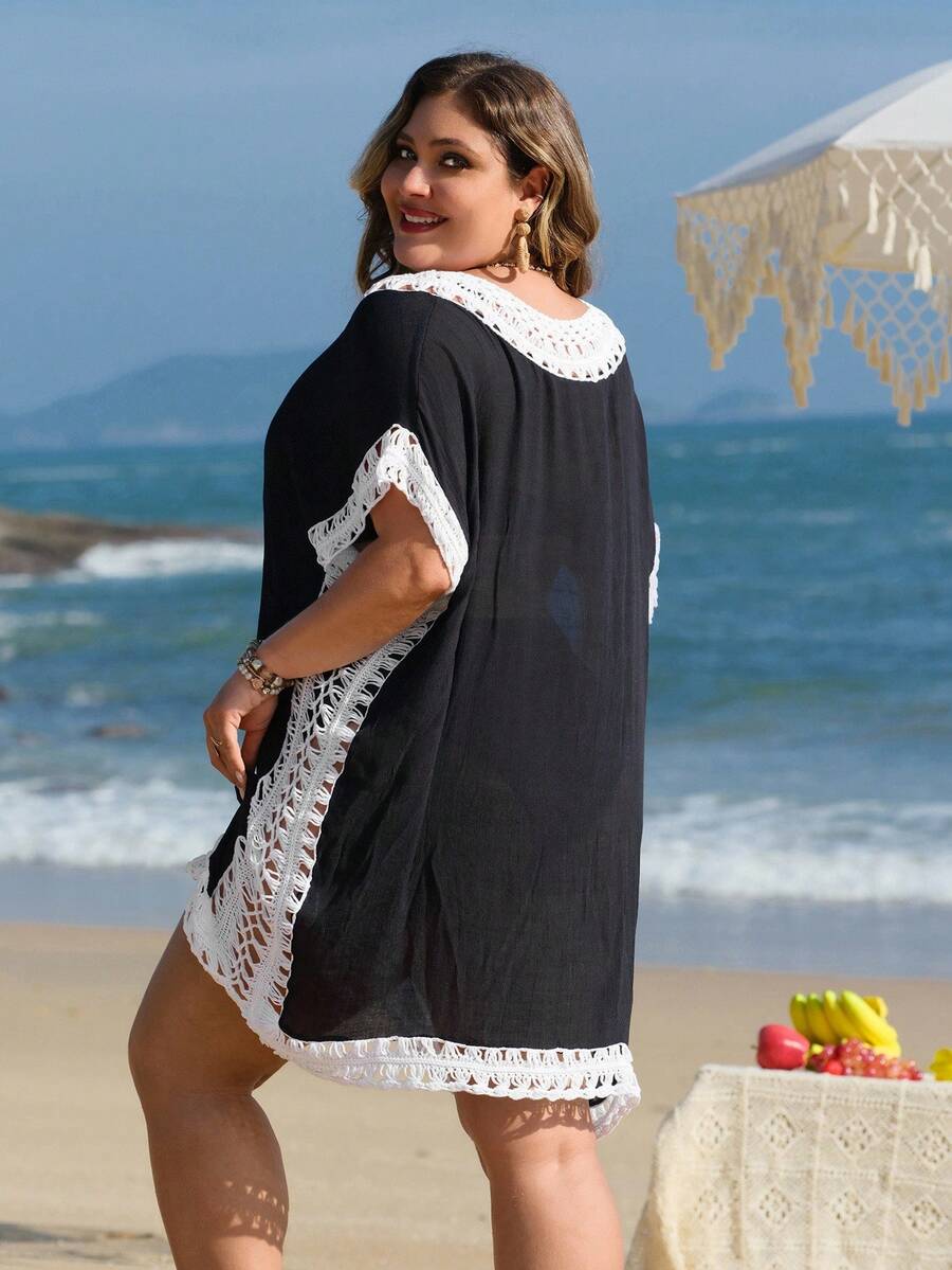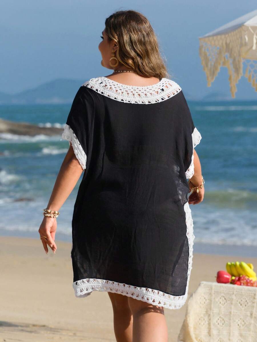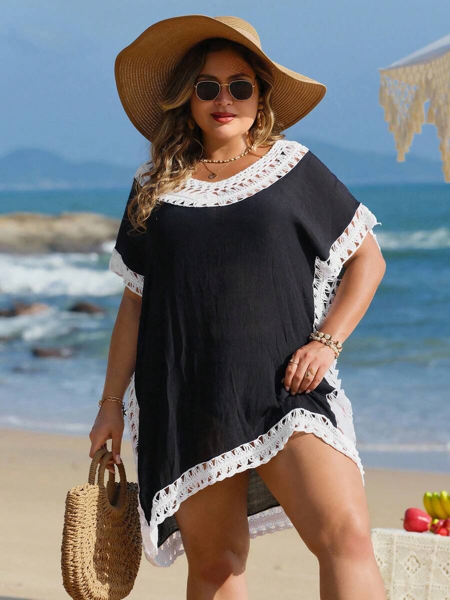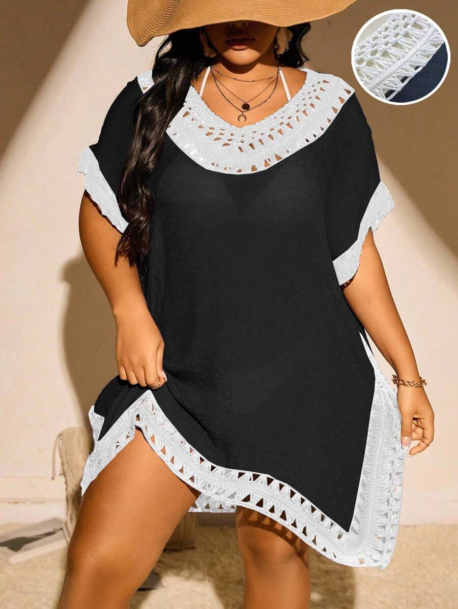 Detalles: Asimetrico, Encaje en contraste, Ribete en contraste