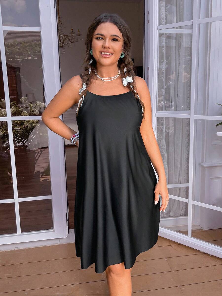 Lushoire vestido de una pieza con tirantes finos, espalda hueca y cintura favorecedora como cubierta para la playa y vacaciones de verano para mujer de talla grande