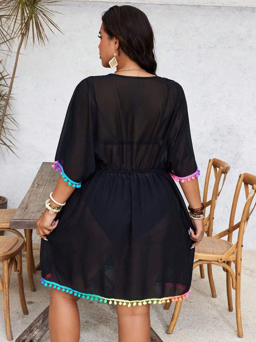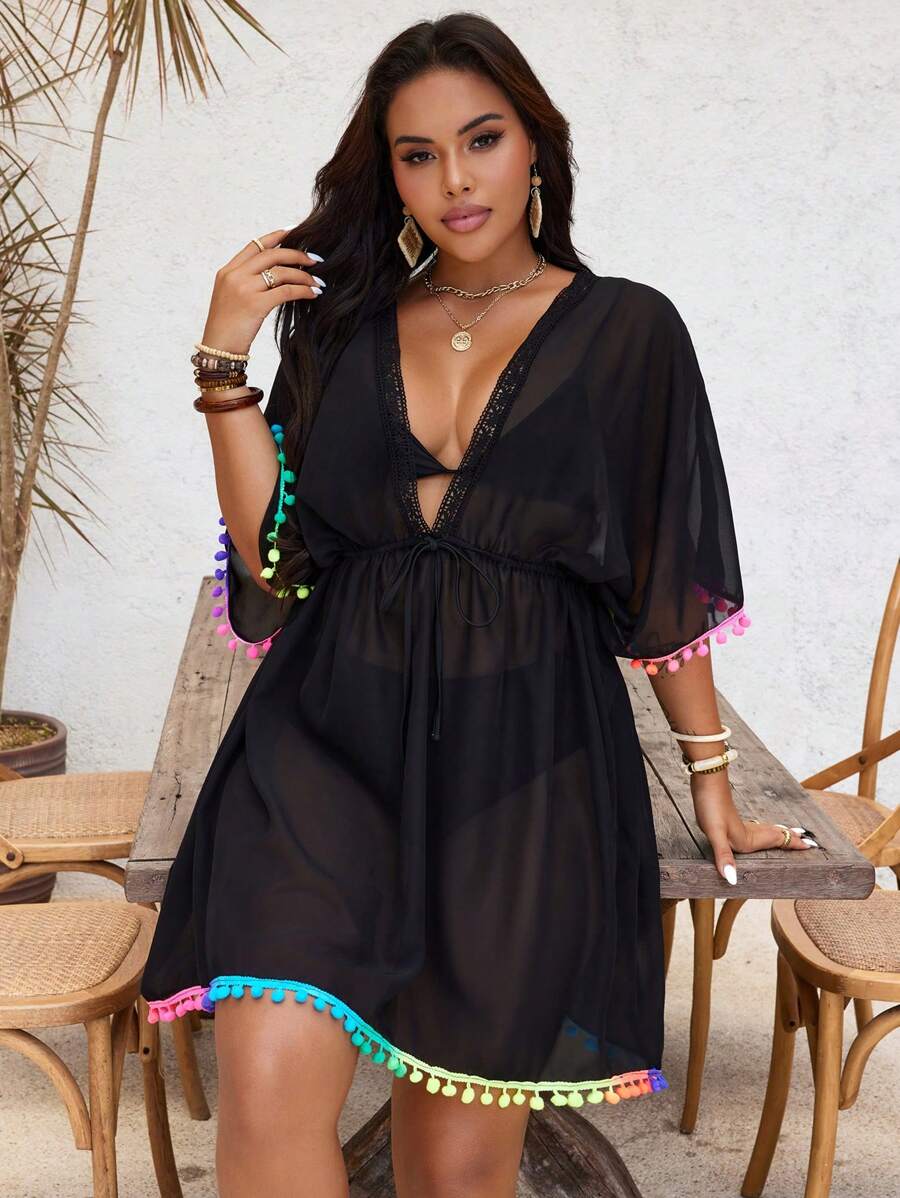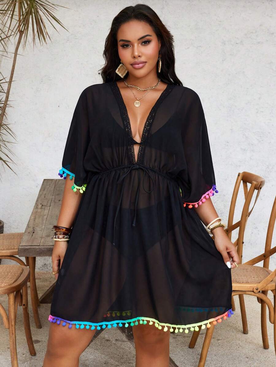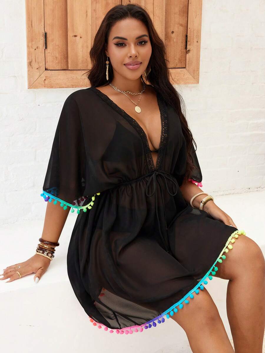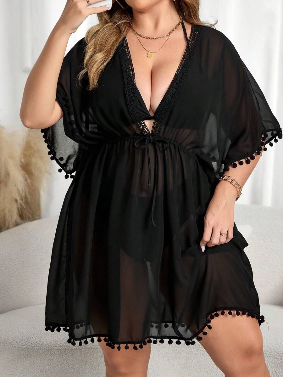 Lushoire cubrecuerpo suelto de escote en v profundo para mujer de talla grande, adecuado para vacaciones en la playa
