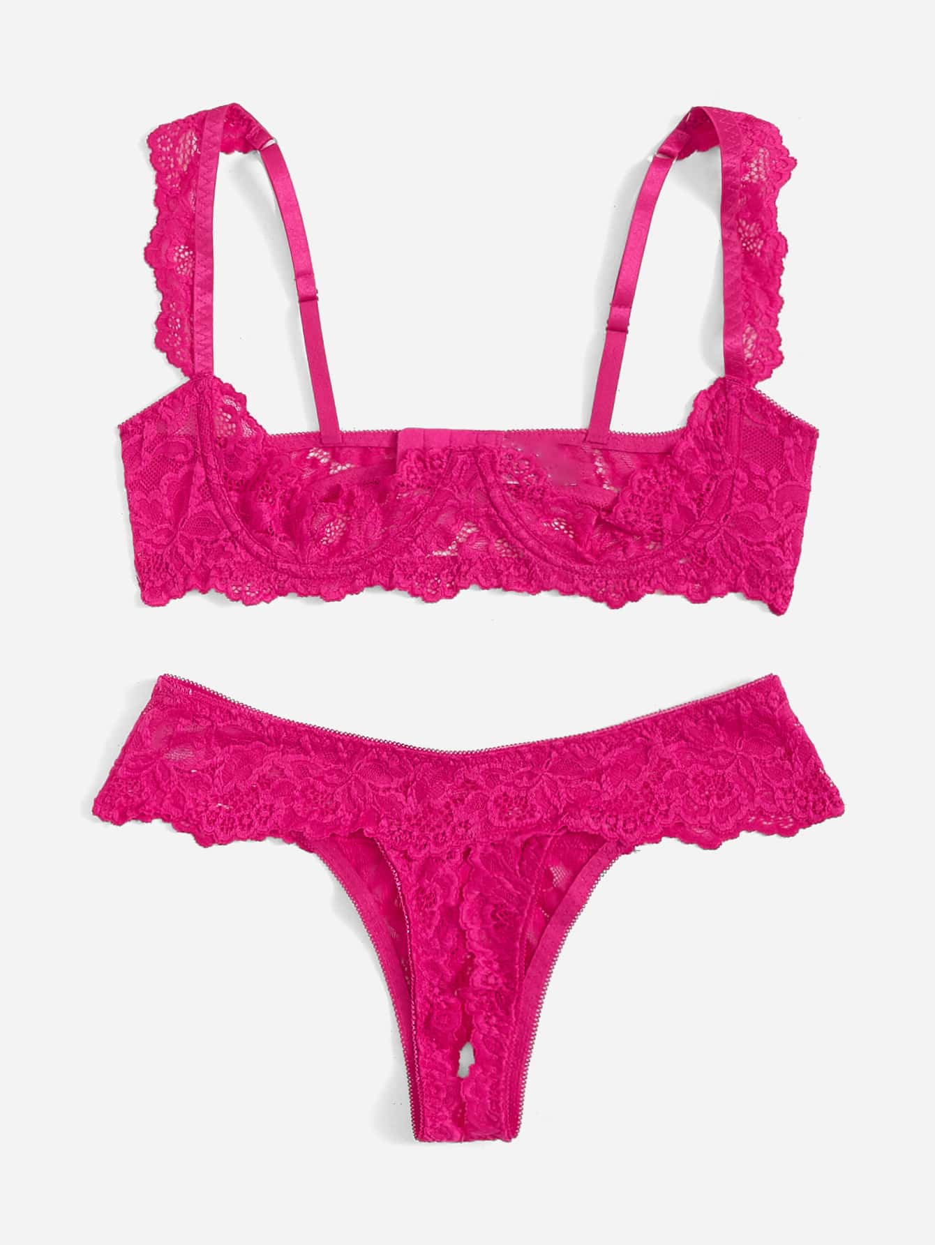 Conjunto de lenceria de 2 piezas con brasier con aros y encaje y tanga – Muy Bonita