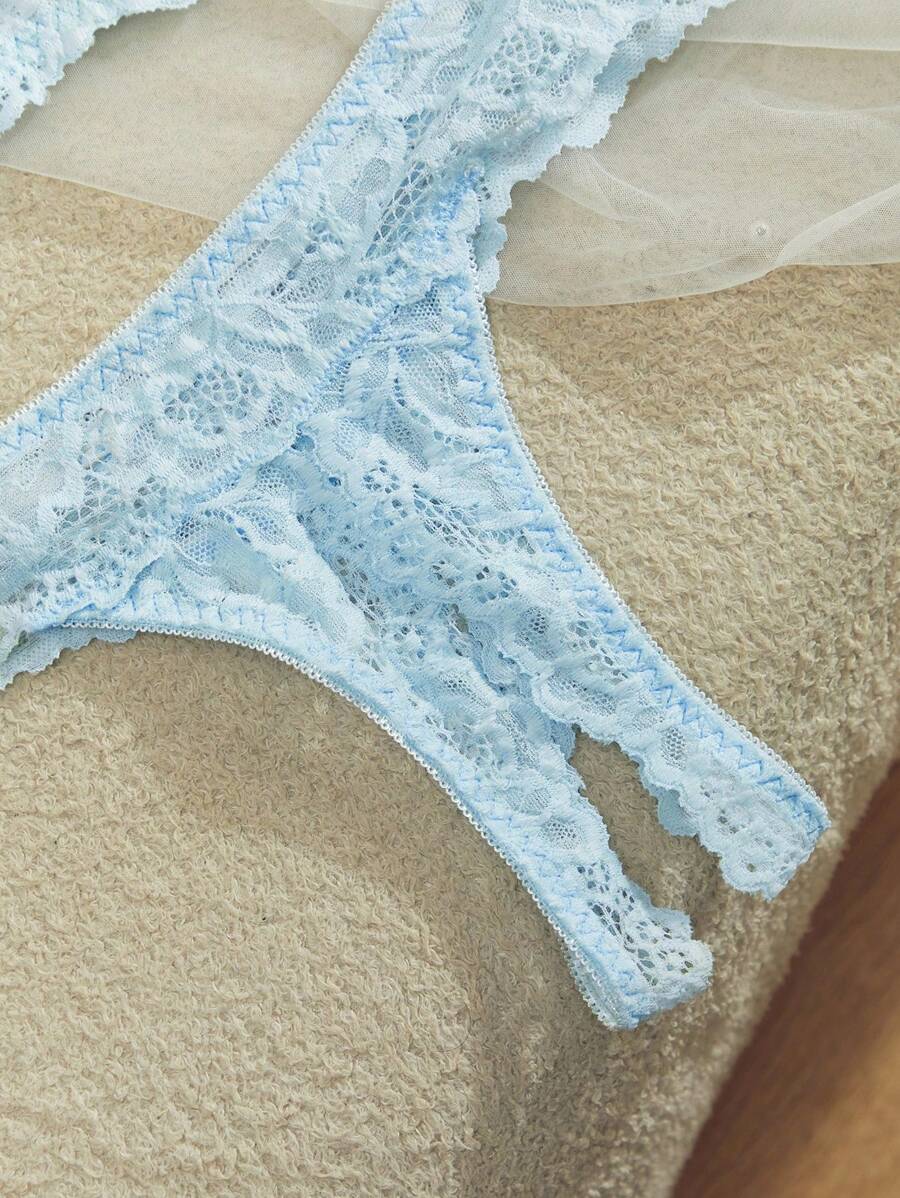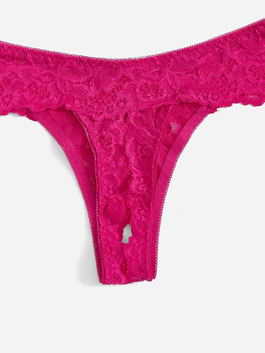 Conjunto de lenceria de 2 piezas con brasier con aros y encaje y tanga de entrepierna abierta, conjunto de lenceria de encaje rosa, conjunto de tanga de encaje, para salir
