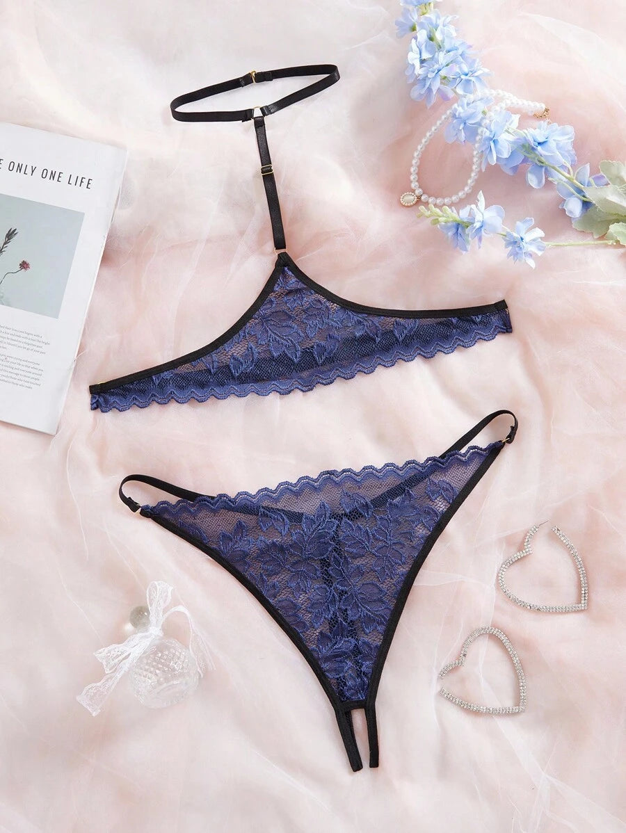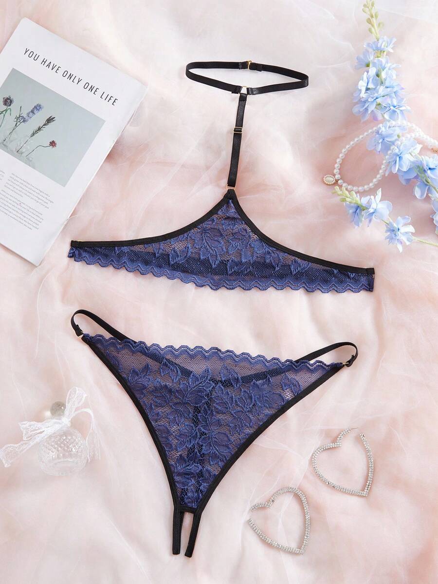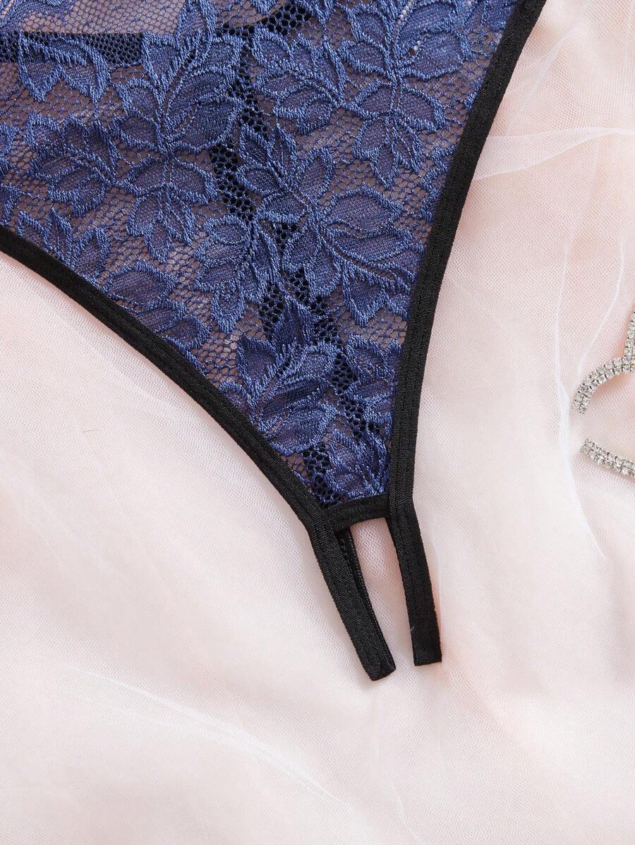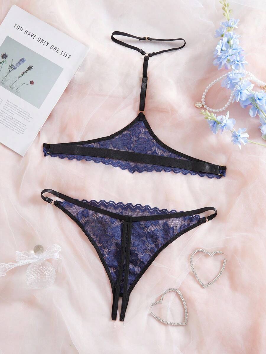 Conjunto de 2 piezas de lenceria sexy de encaje azul – Muy Bonita