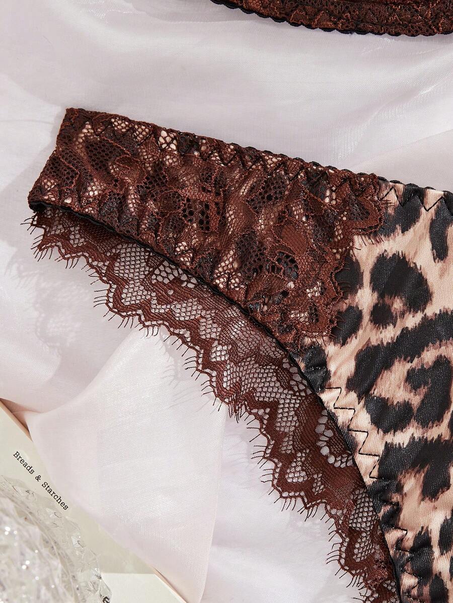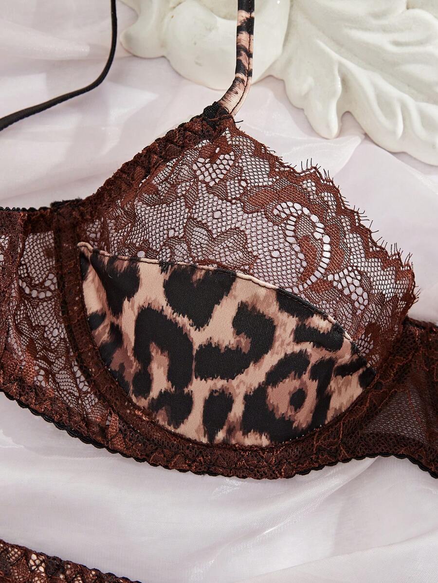 Conjunto de lenceria para mujer con encaje y estampado de leopardo, pa – Muy Bonita