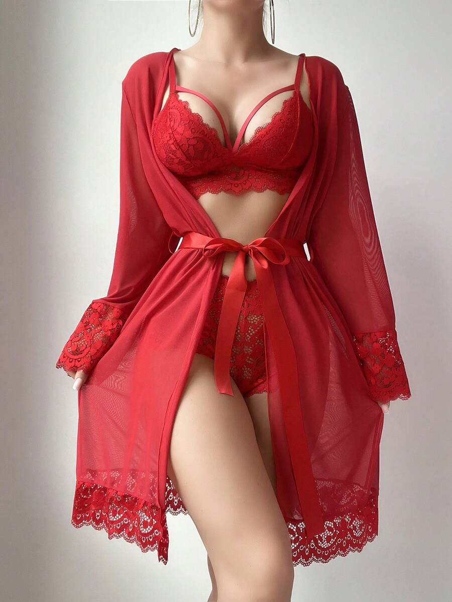 Detalles: Encaje en contraste, Transparente, Cinturon