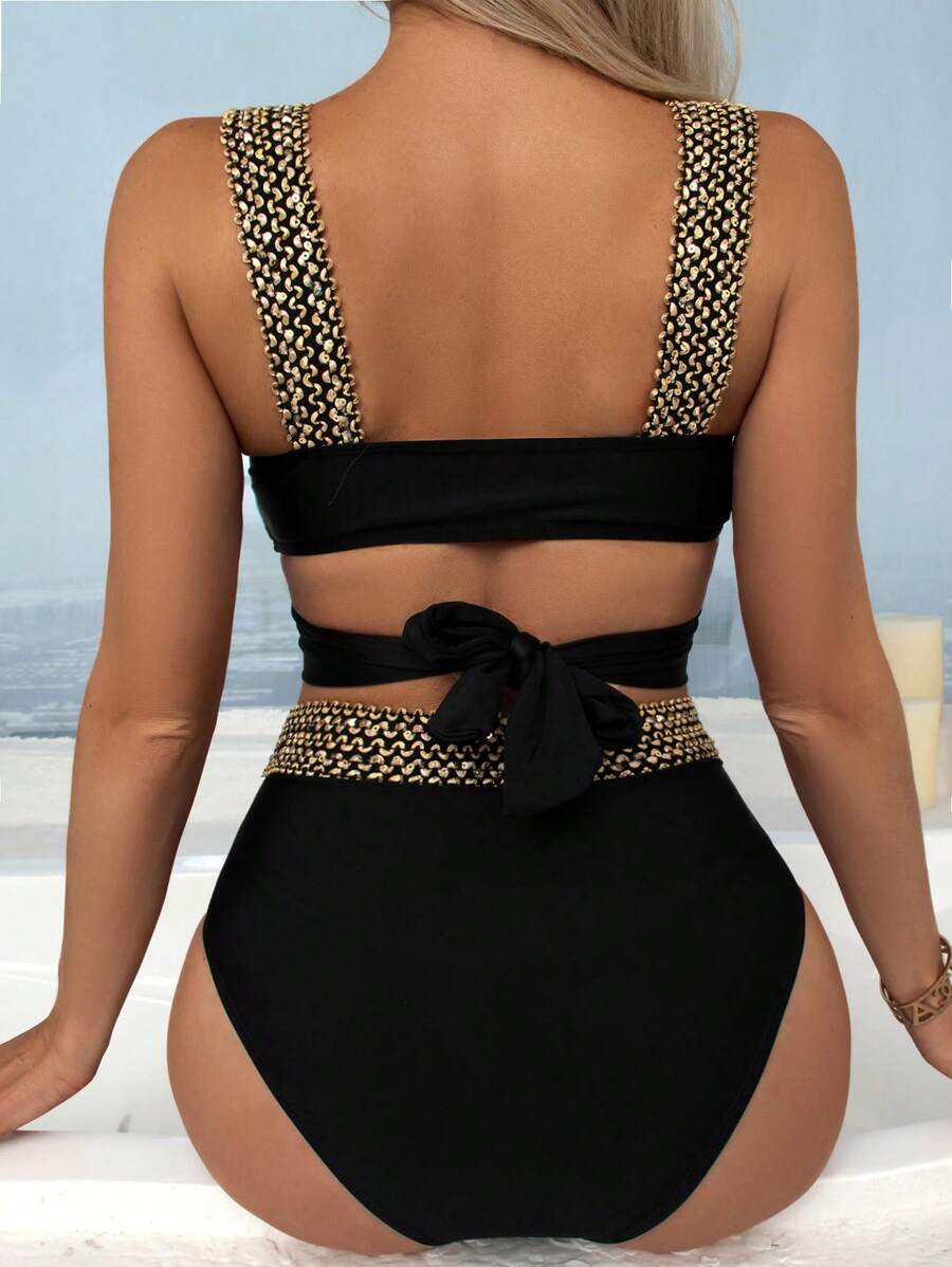 Bikini cruzado con ribete en contraste de playa de verano – Muy Bonita