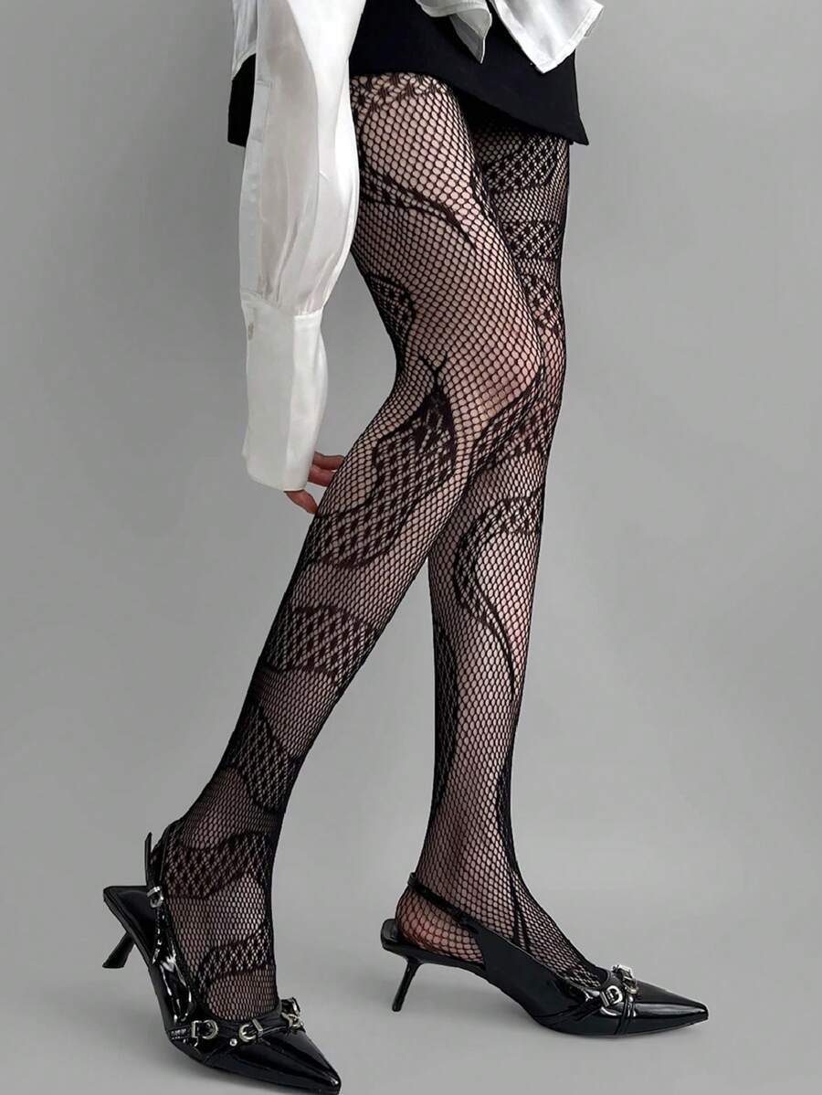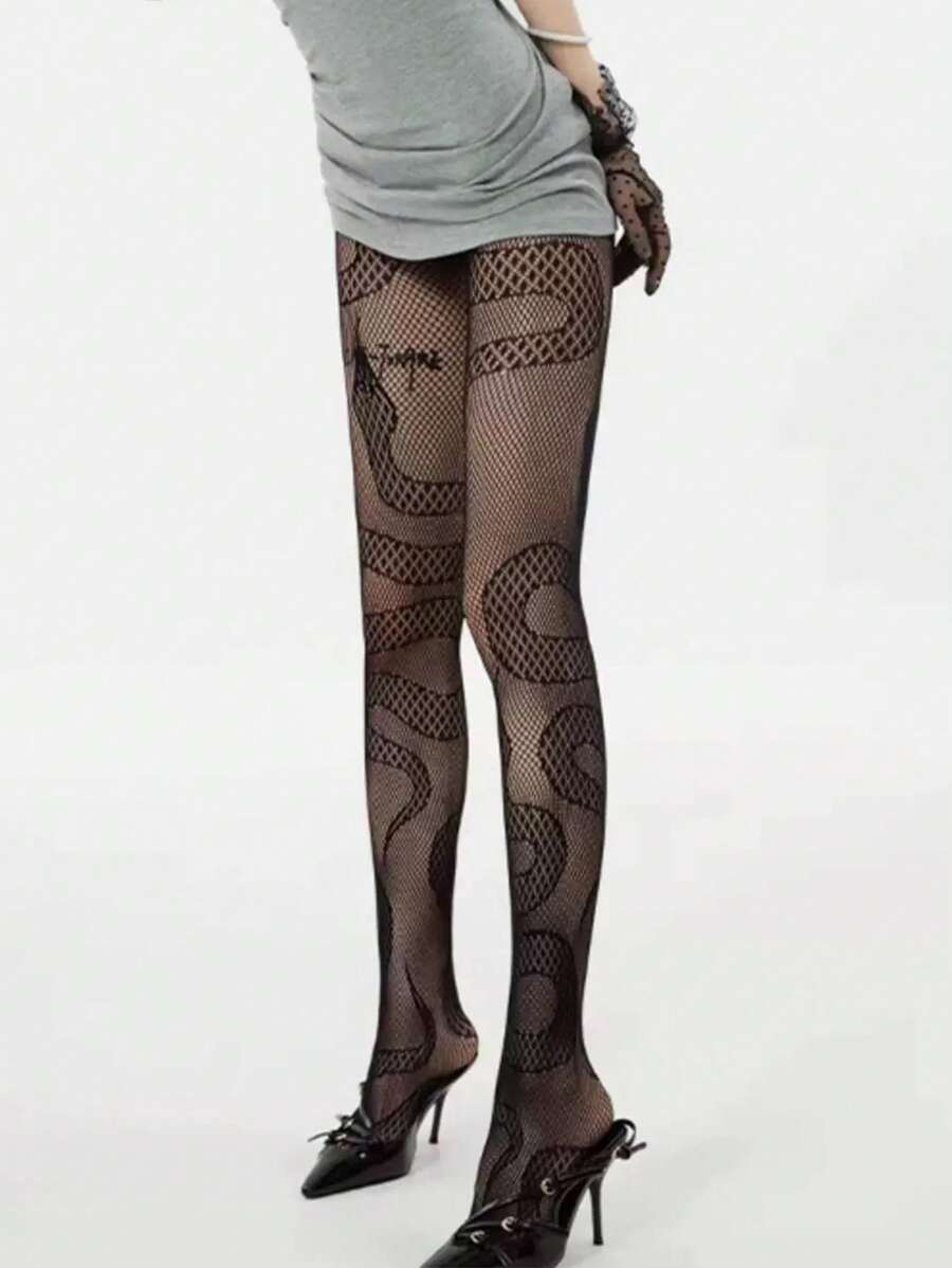 1 pieza medias de red de malla con estampado de serpiente sexy para mujer, estilo minimalista oscuro y versatil