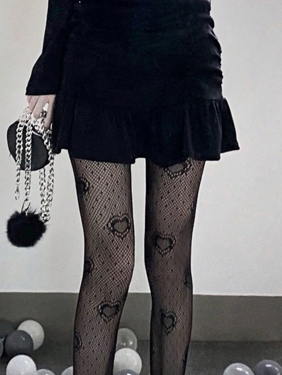 [1par] medias unicas y coloridas con malla de forma de corazon grande hueco para los fashionistas de y2k, medias sexys y lindas