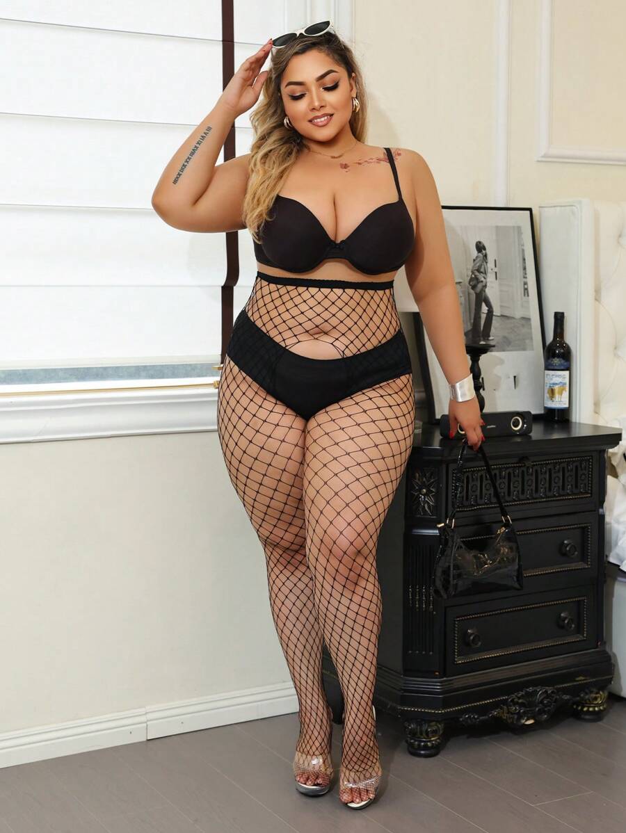 2 piezas leggings de talla grande para muslos abiertos, tejido de red – Muy Bonita