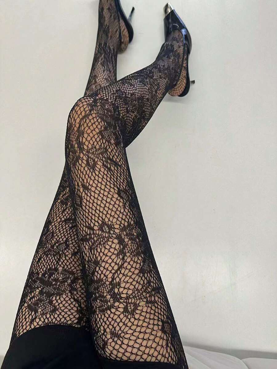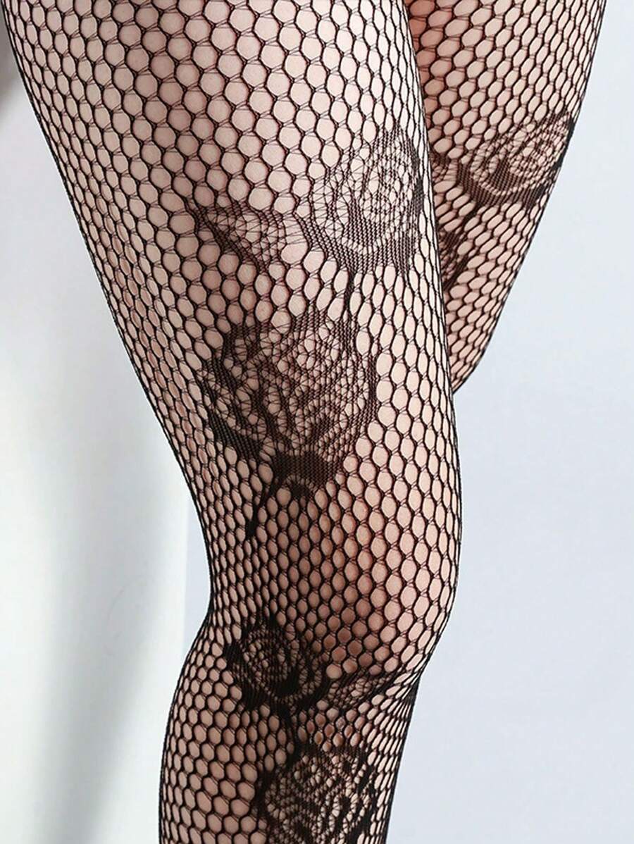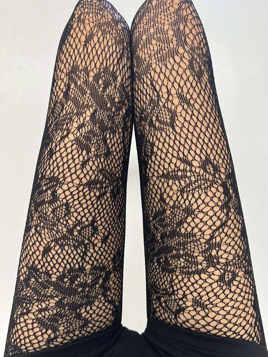 1 par de medias de red negras con flores | medias transparentes y sexy – Muy Bonita