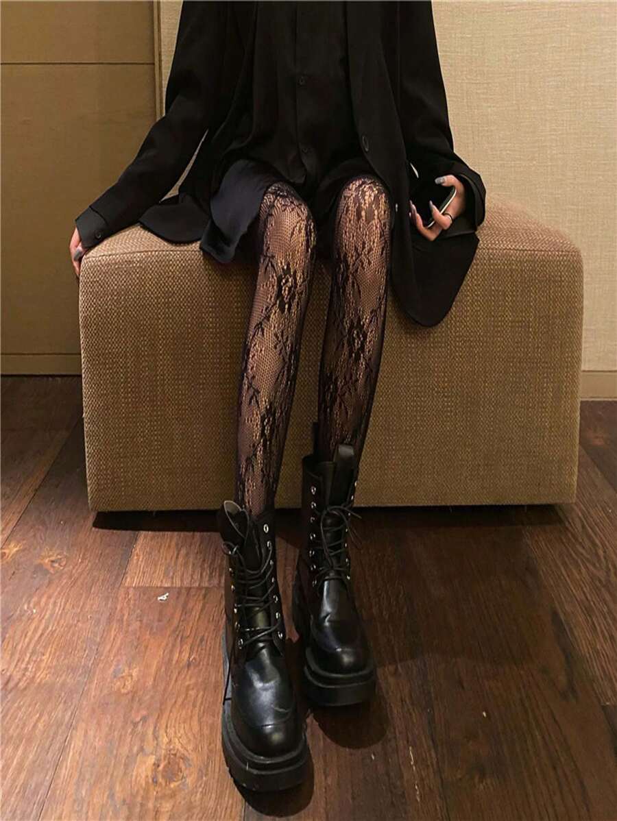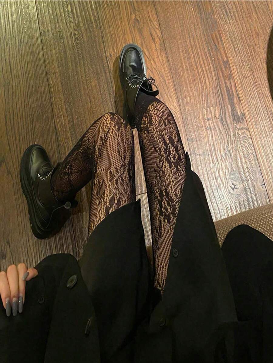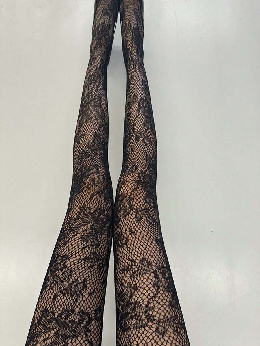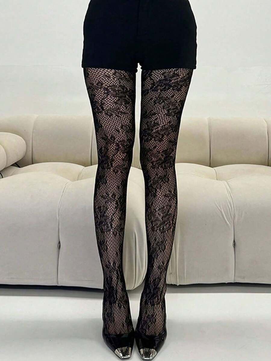 1 par de medias de red negras con flores | medias transparentes y sexy – Muy Bonita