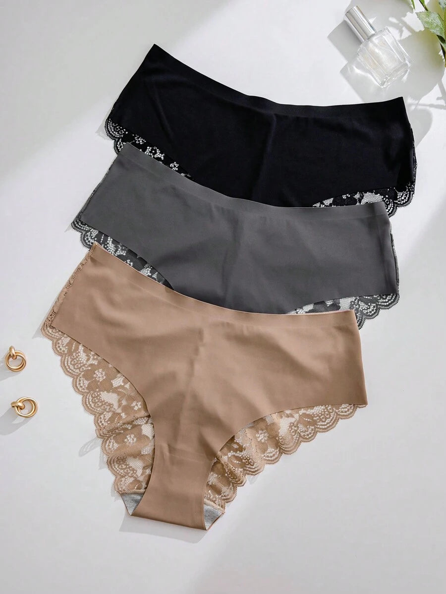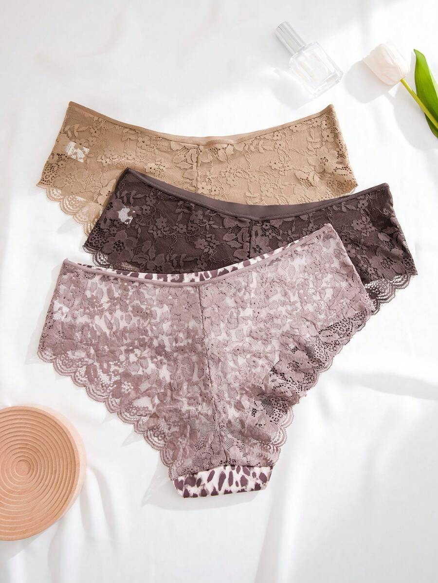Ropa interior de encaje con contraste, paquete de 3 prendas de lenceri – Muy Bonita