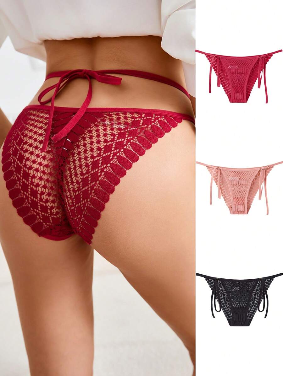Conjunto de 3 piezas de lenceria sexy para mujer con tangas de encaje de gran elasticidad y confeccion en variedad de colores transparentes