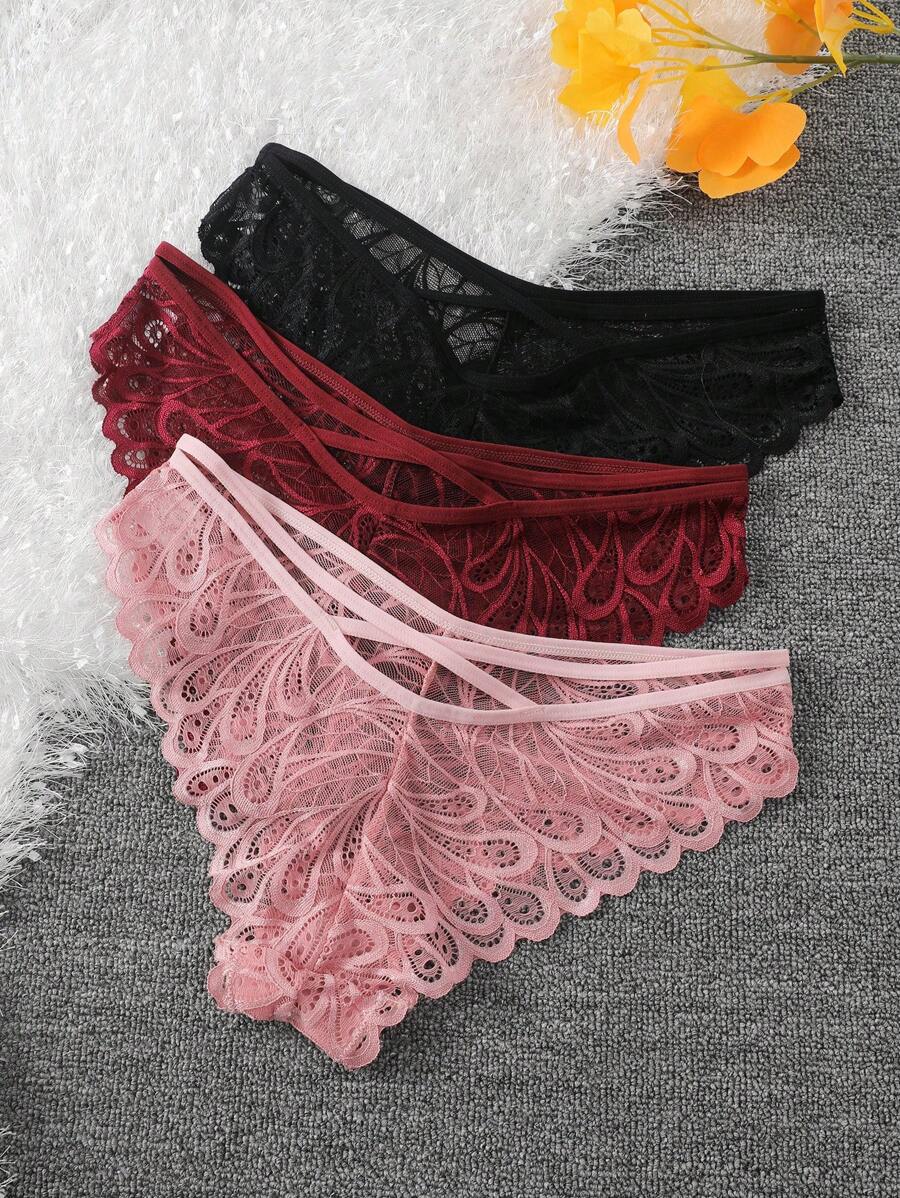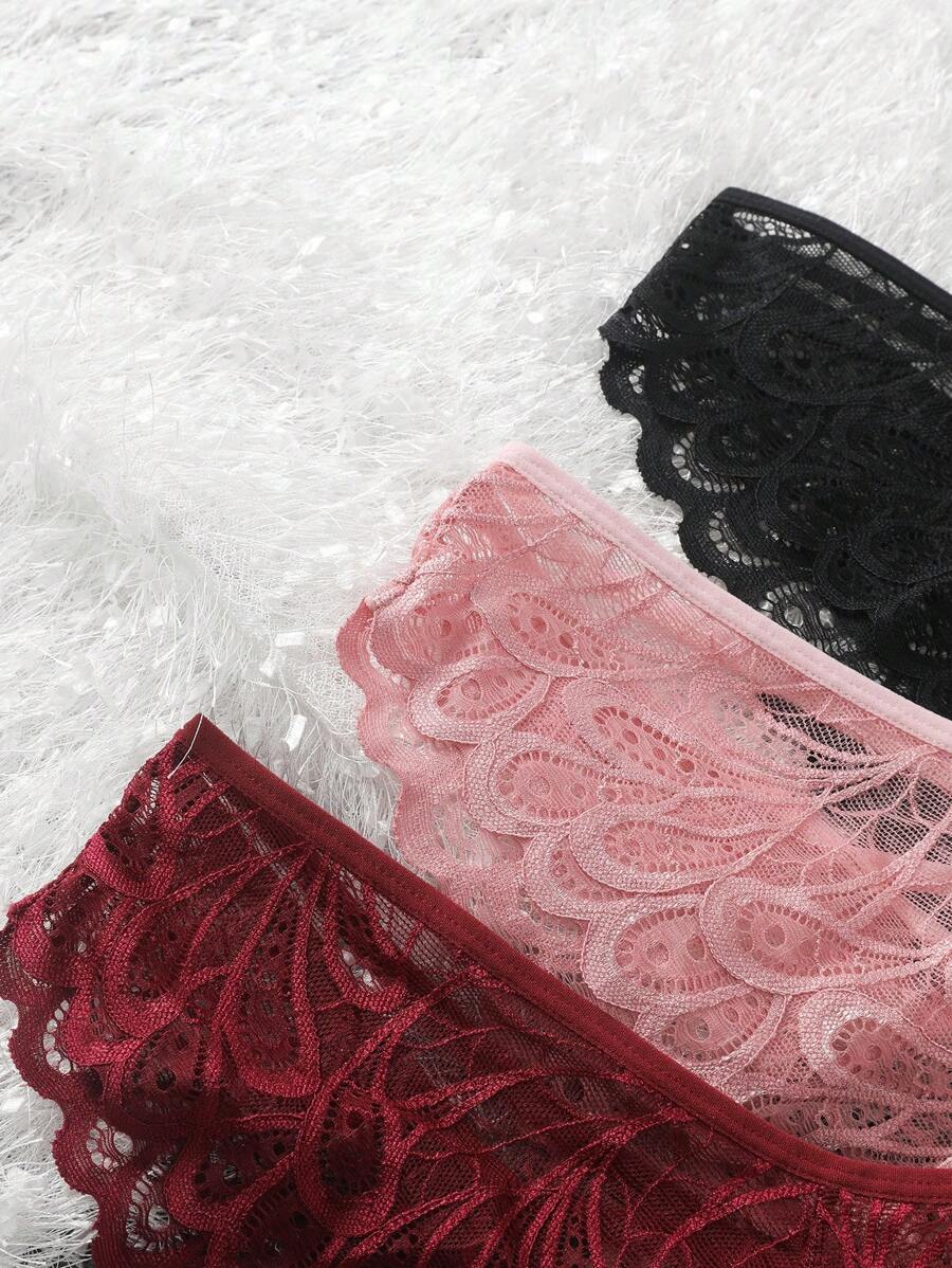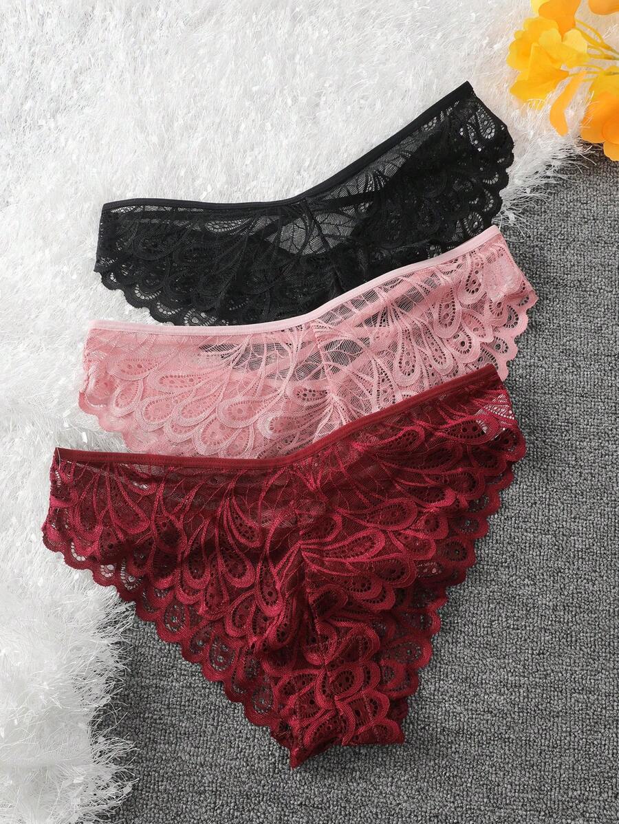 Conjunto de 3 bragas de encaje elegantes y sexys de unicolor para muje – Muy Bonita