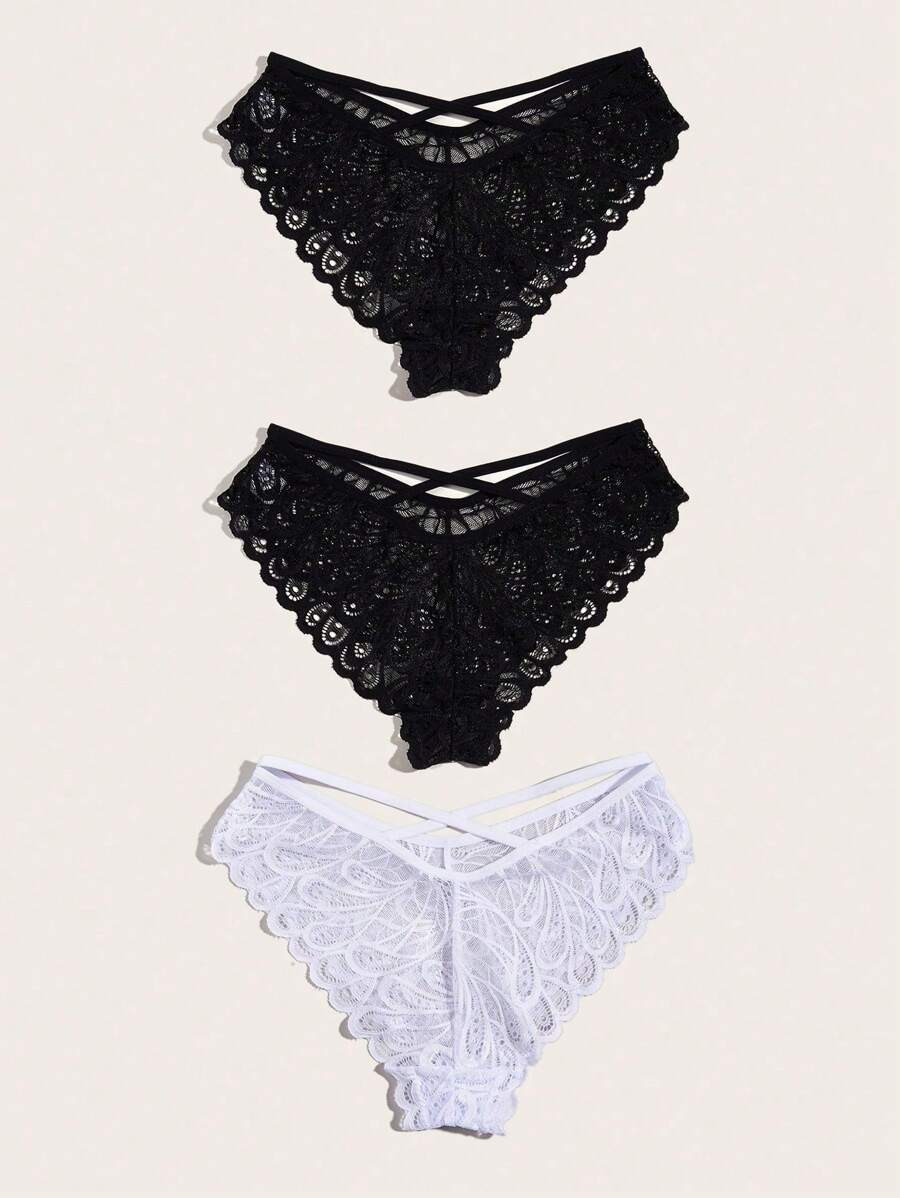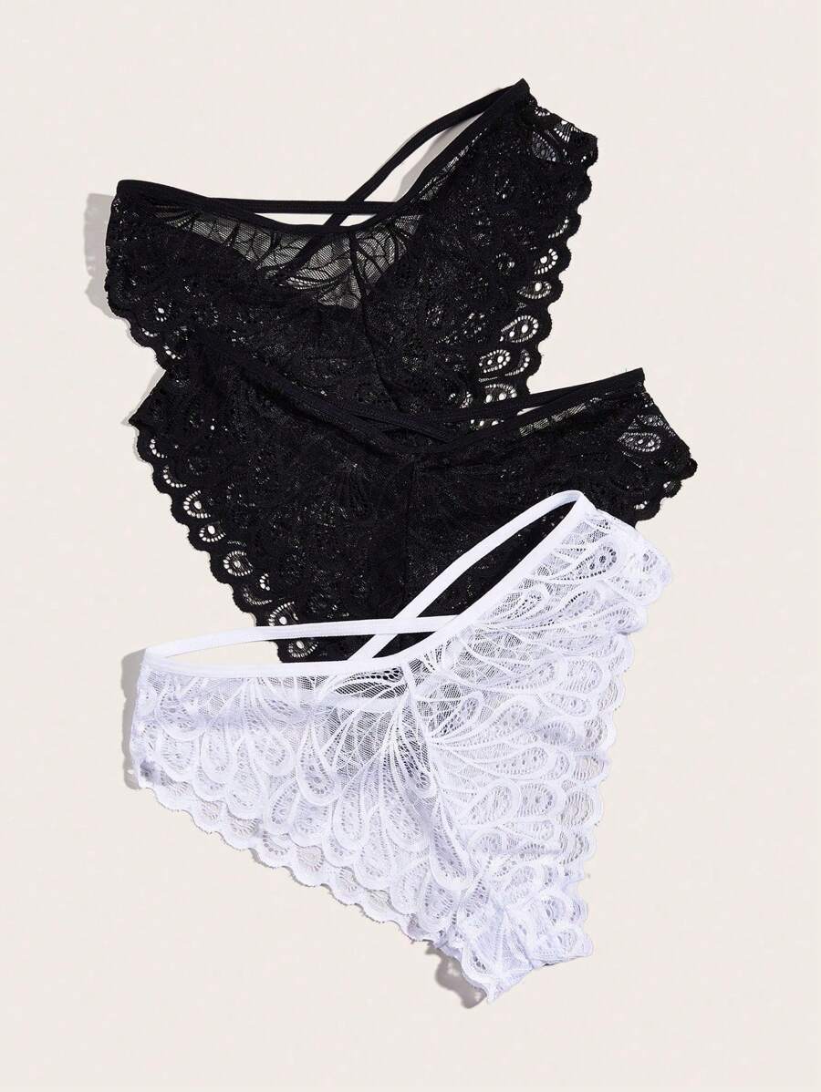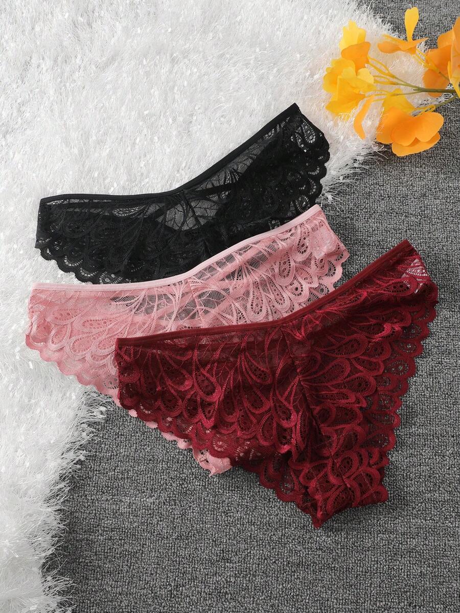 Conjunto de 3 bragas de encaje elegantes y sexys de unicolor para muje – Muy Bonita